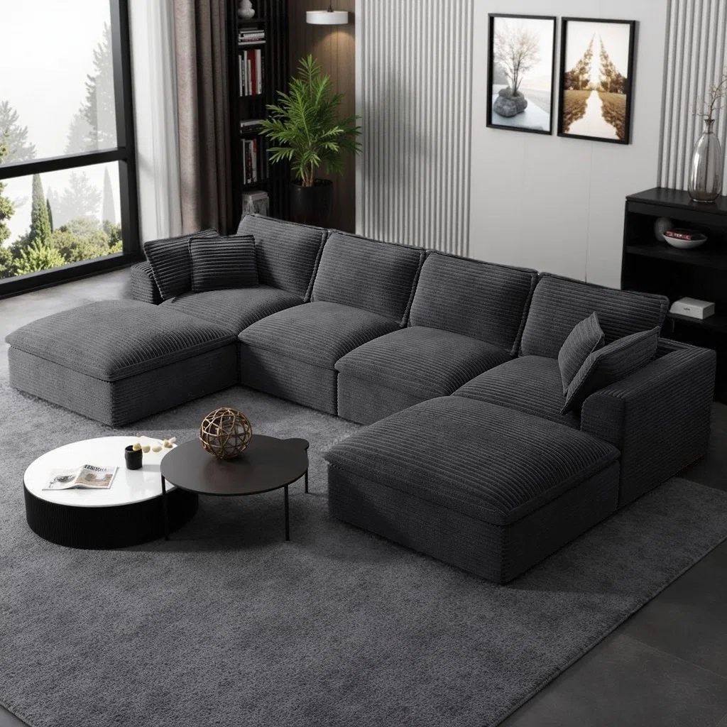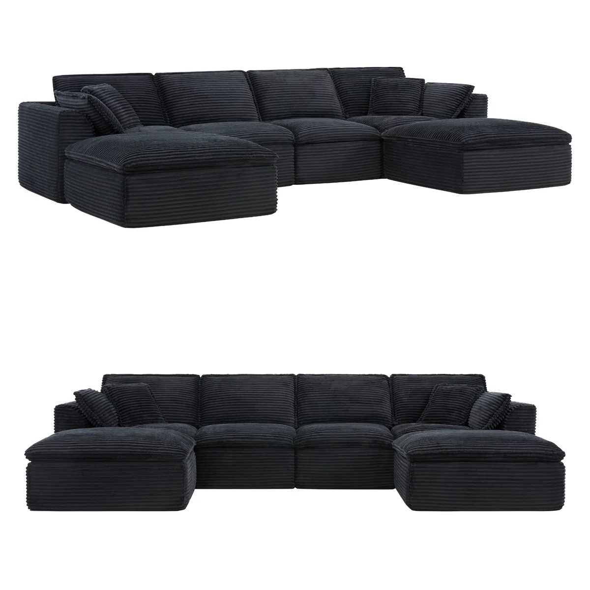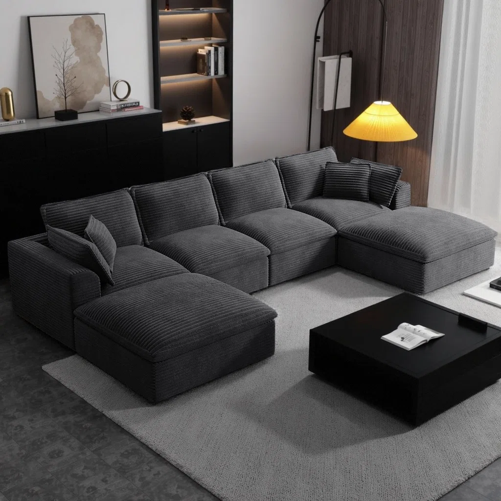 Sprawling 6-Seat Capacity: Massive U-shape layout with two ottomans for versatile seating and lounging options.