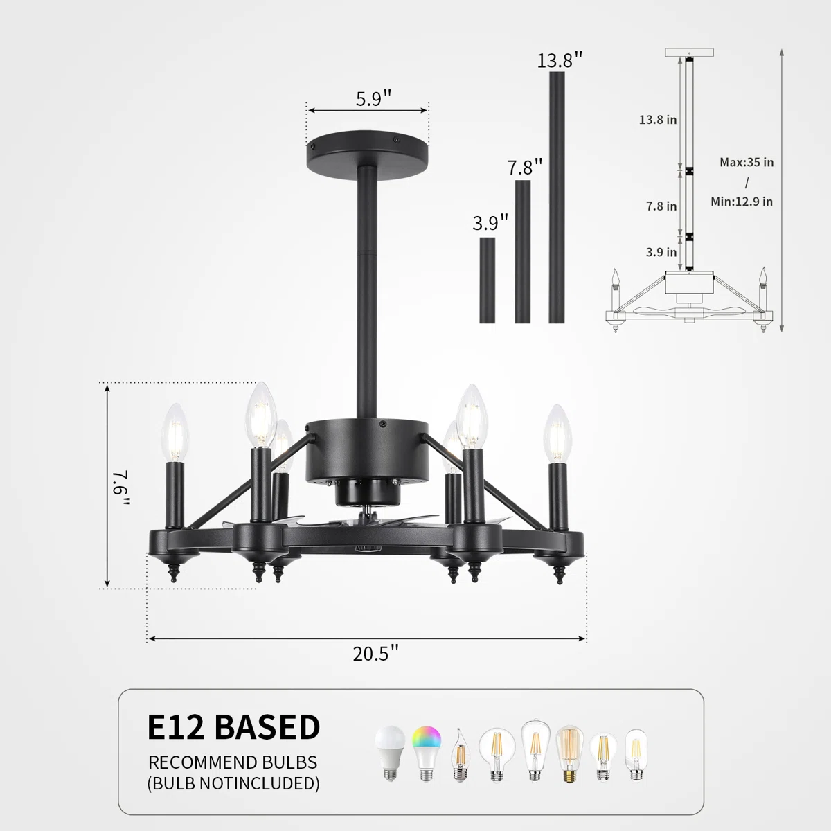• 20.5'' fandelier ceiling fan with six E12 candle-style lights (bulbs not included)