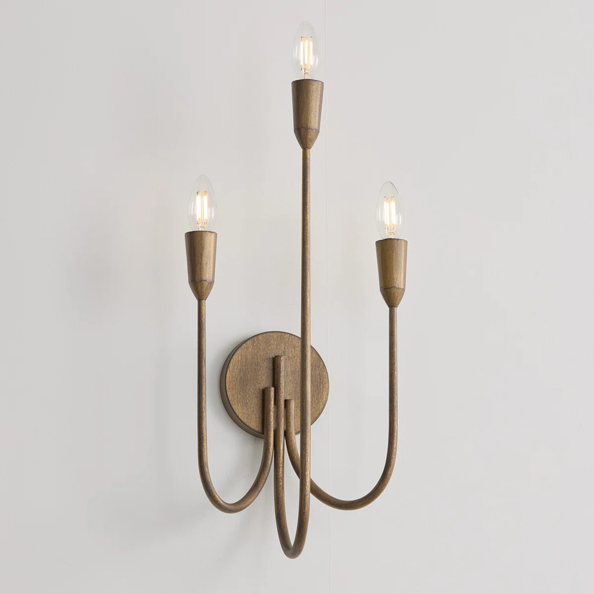 This elegant 3-light candle sconce features a tall, decorative silhouette finished in a rich Mystic Bronze. Designed with curved arms and classic candle-style holders, it brings warmth and sophistication to hallways, living rooms, dining spaces, or bedroom walls. Its metal construction ensures long-lasting durability, and it is suitable for damp-rated indoor areas.