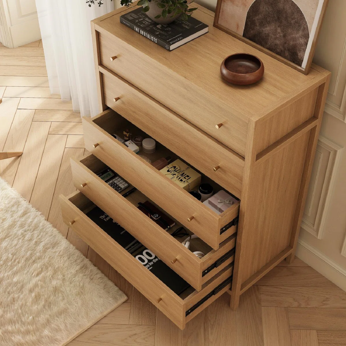 • Ample Storage--Stay organized with five spacious drawers, providing plenty of room for your belongings.