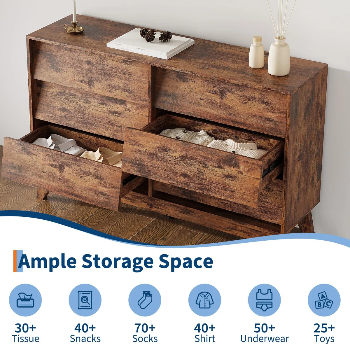 6 spacious drawers for clothing, books, and everyday essentials