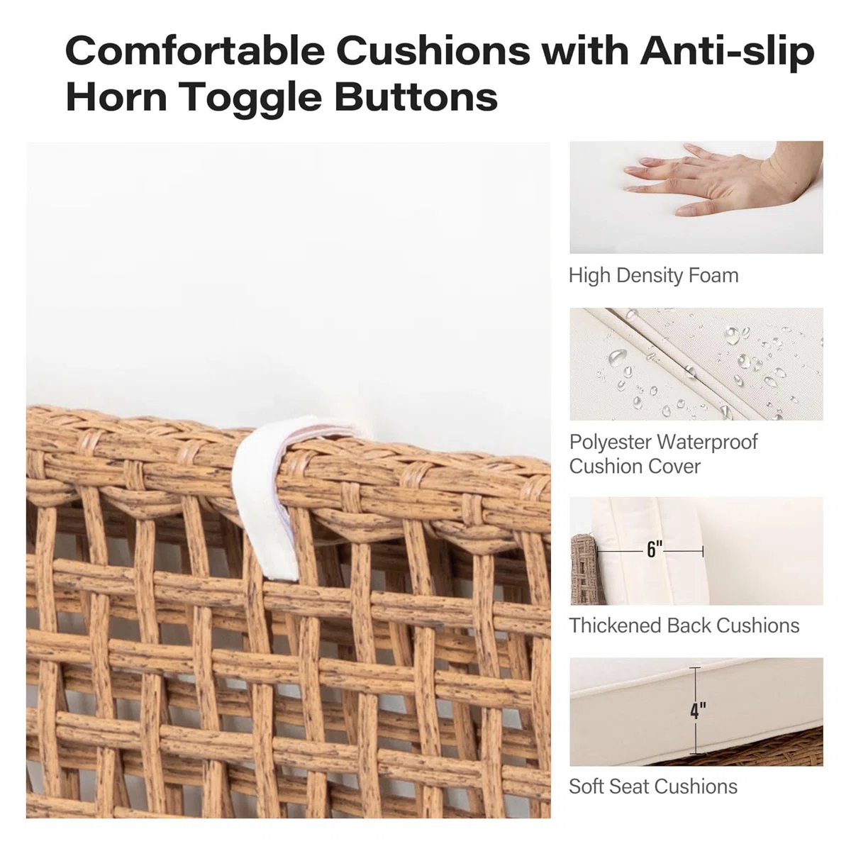 • High-density PE wicker exterior with a rust-resistant powder-coated iron inner frame