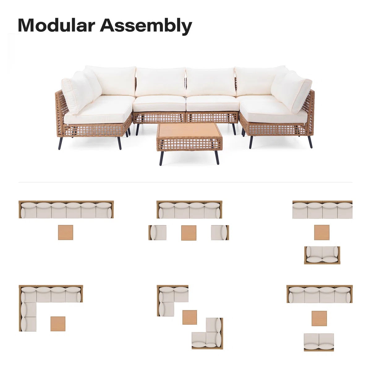 • Modular layout allows flexible arrangement to fit patios, decks, and backyard spaces