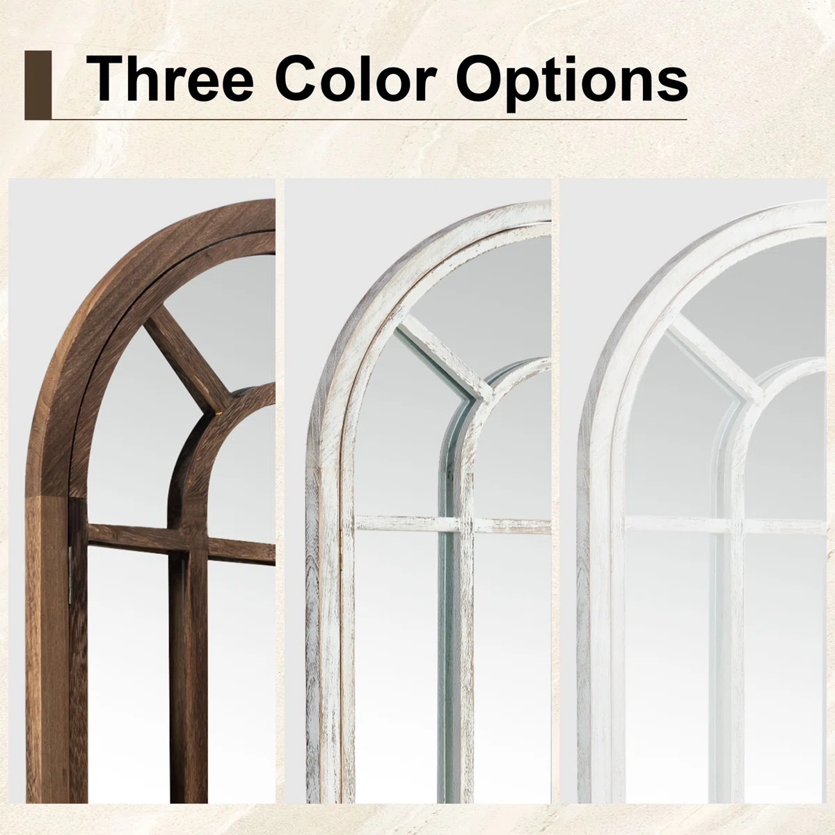 • Arched Top Design: The mirror's arched top adds a graceful curve that softens the overall look, providing a touch of traditional charm.