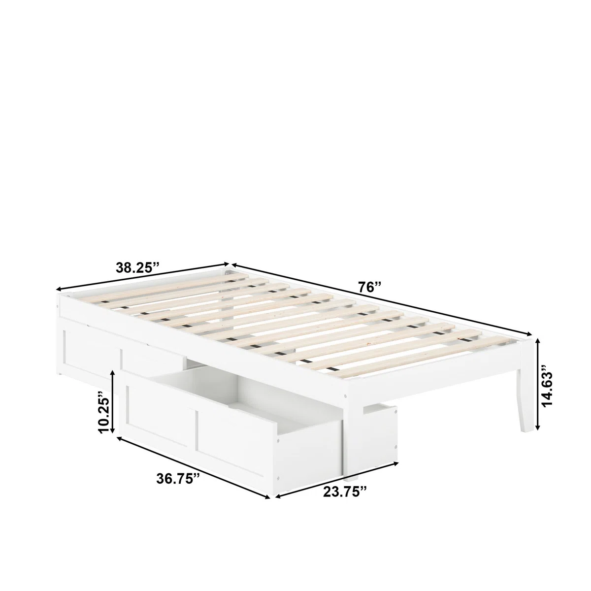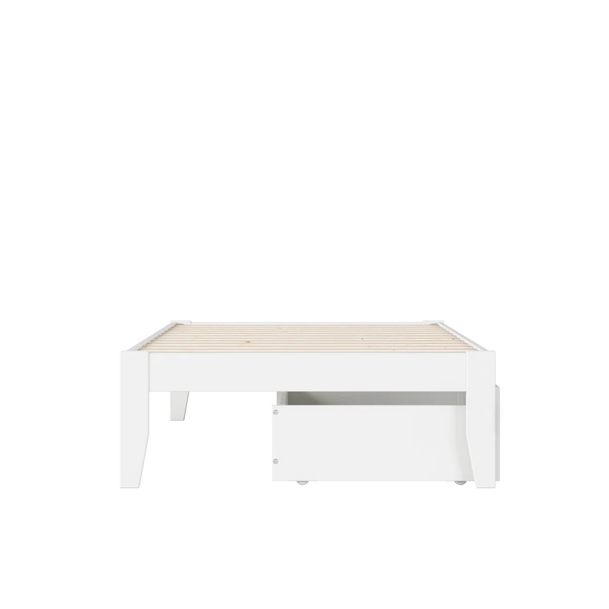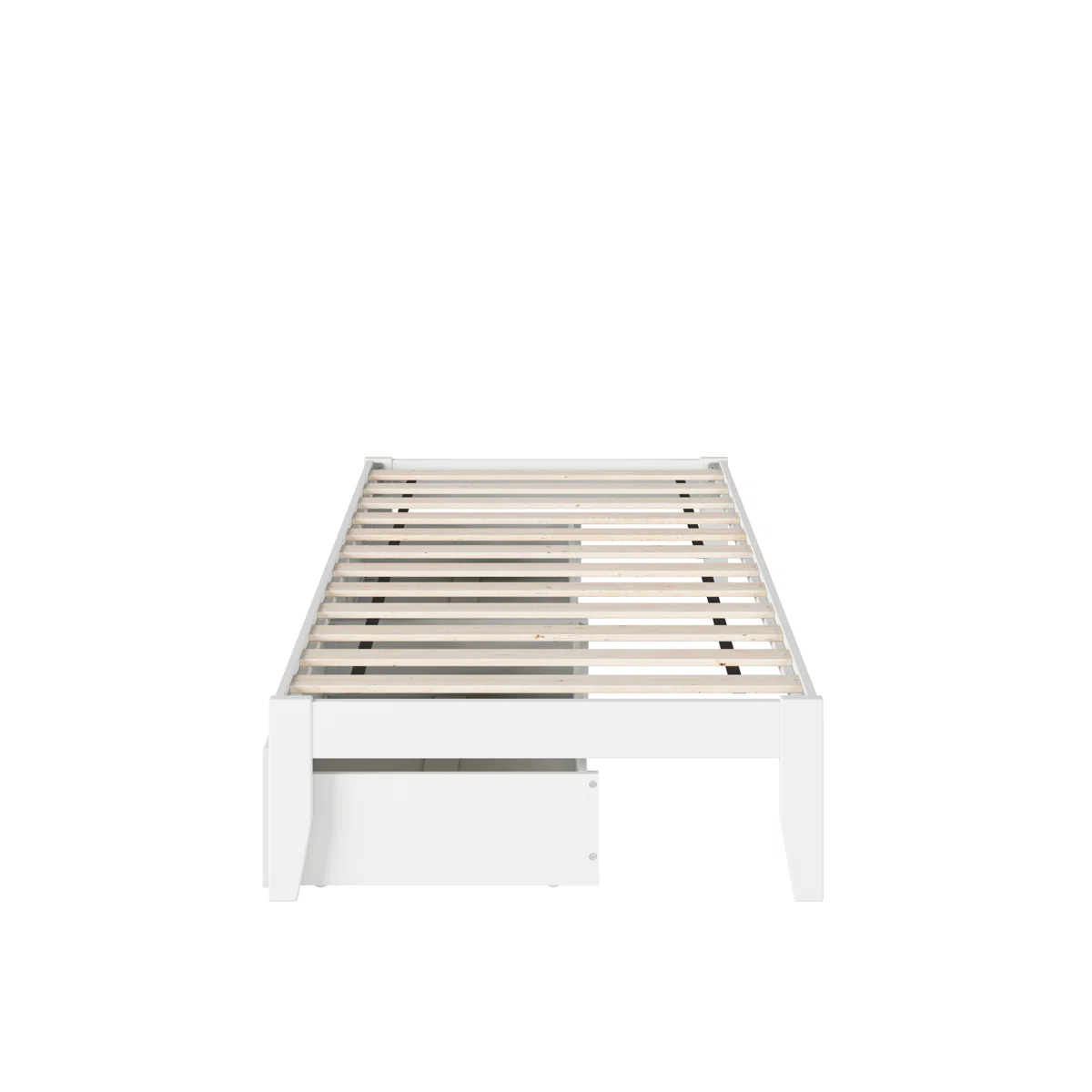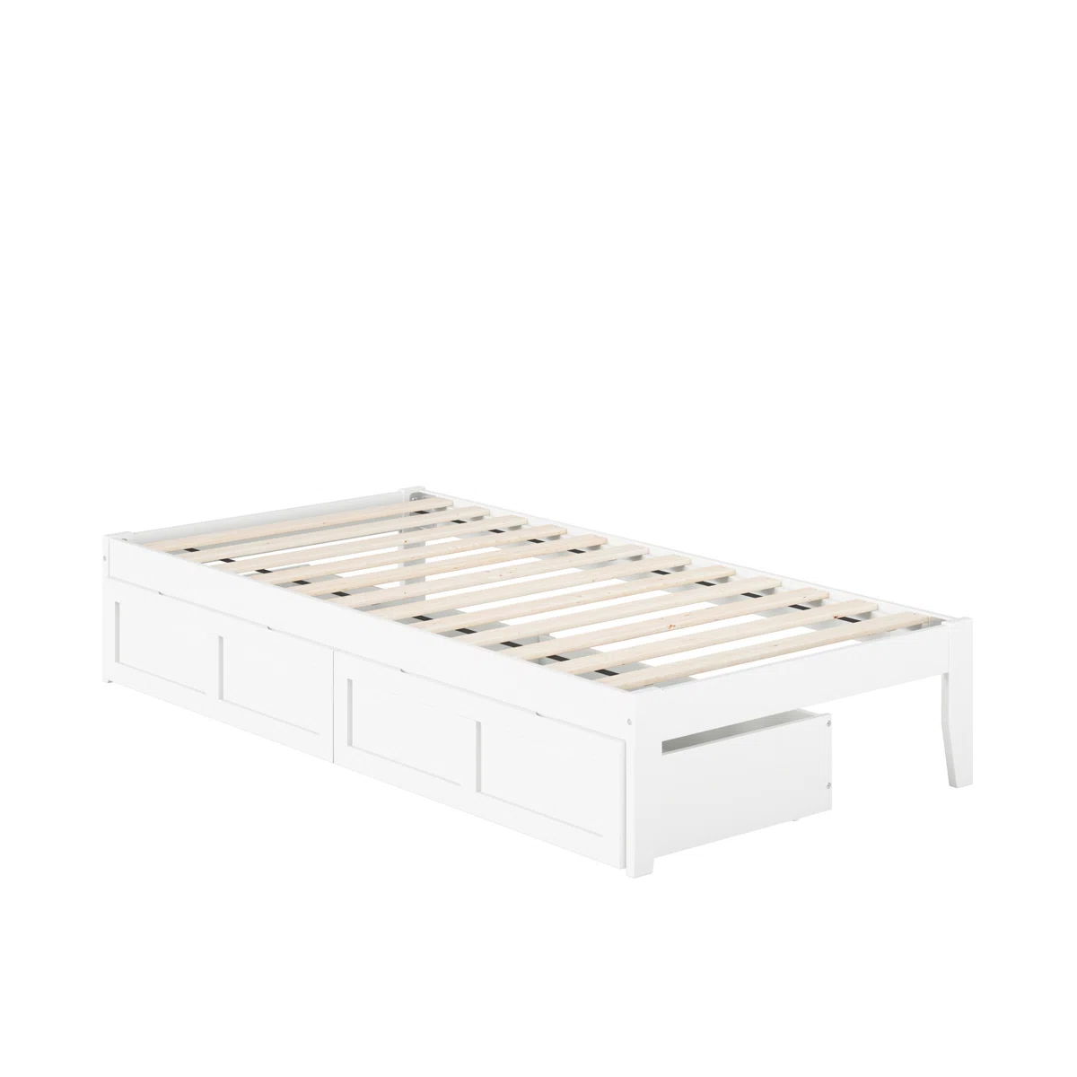 The Lark Manor Aayanna Twin Storage Platform Bed combines simplicity, functionality, and modern design. Crafted from solid hardwood and veneers with a clean white finish, this bed includes a supportive slat kit, eliminating the need for a box spring. Two spacious underbed storage drawers provide versatile organization options, while an attachable USB charger with dual ports keeps your devices powered and ready. Perfect for small or large bedrooms, this bed offers both style and practicality.