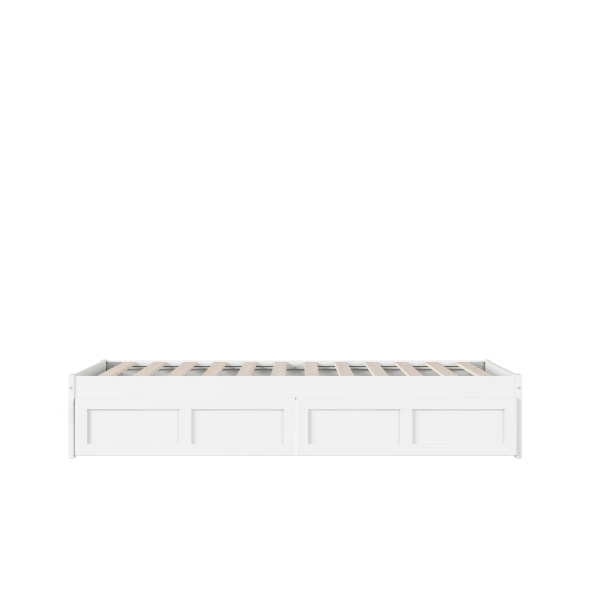 • Twin-size platform bed with clean white finish