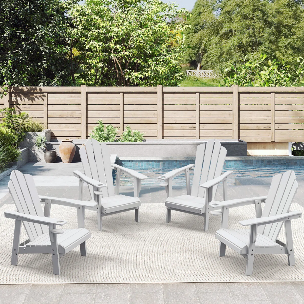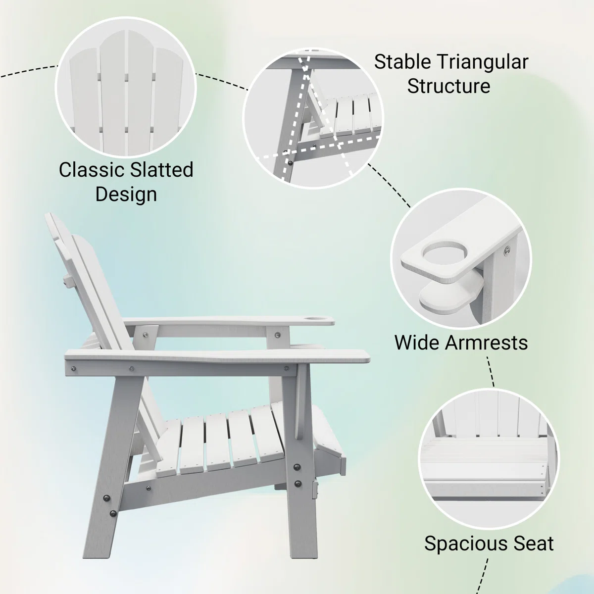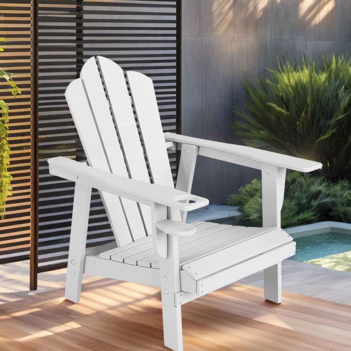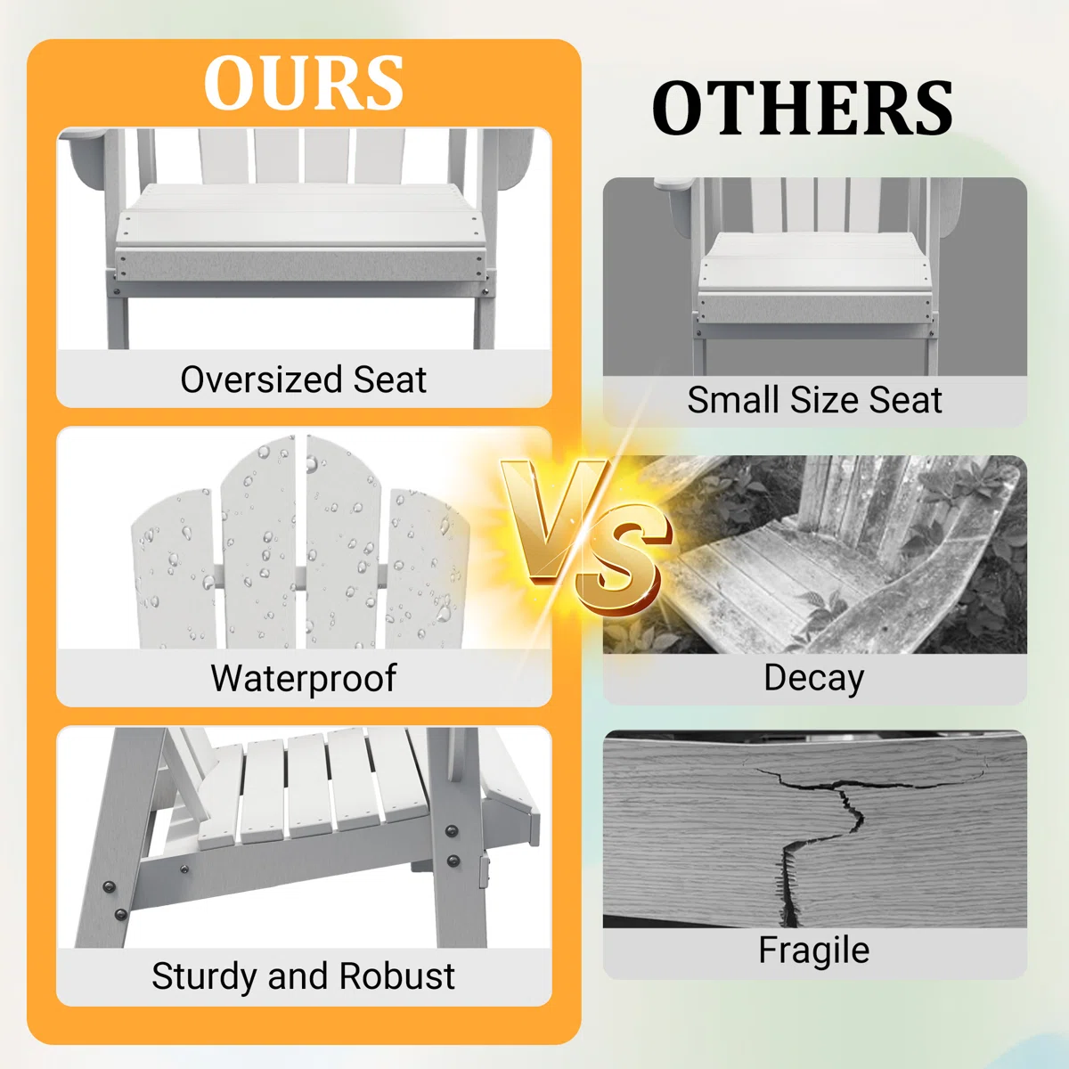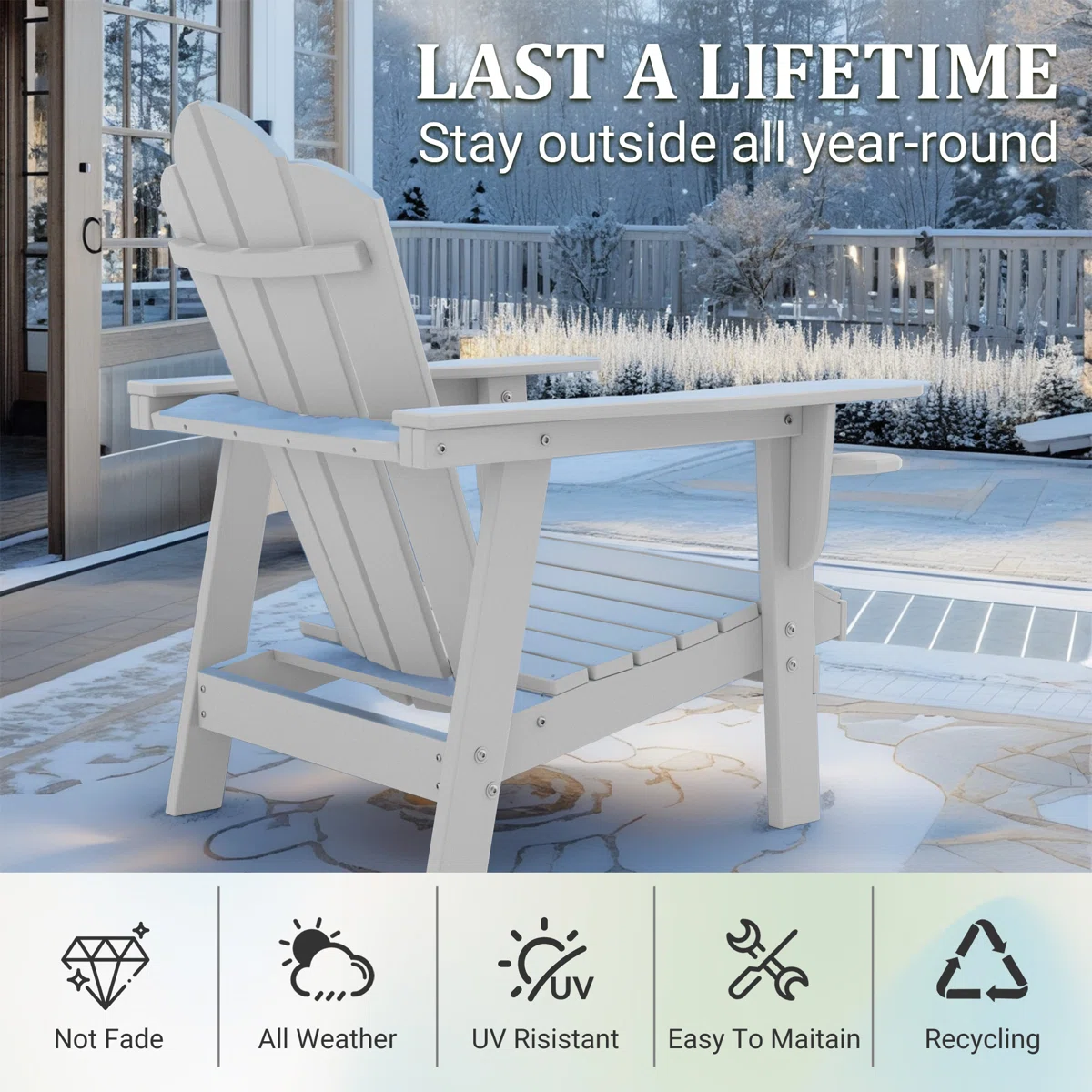 Upgrade your outdoor space with this premium Oversized HDPE Adirondack Chair, designed to deliver long-lasting comfort, timeless style, and unbeatable durability. Made from weather-resistant, UV-protected, and fade-proof high-density polyethylene (HDPE), this outdoor chair is built to handle every season from intense summer sunlight to heavy coastal winds. Its wide armrests with built-in cup holders, ergonomic cloud-shaped backrest, and contoured waterfall seat offer exceptional relaxation for lounging around a fire pit, enjoying a drink on the porch, or simply unwinding in your backyard. The realistic wood-grain texture gives it the warmth of natural wood without the upkeep no staining, repainting, or rotting. Available in gorgeous color options, this all-season Adirondack chair makes an excellent gift for friends and family who love outdoor gatherings, camping, or relaxing on the patio, porch, poolside, or garden.