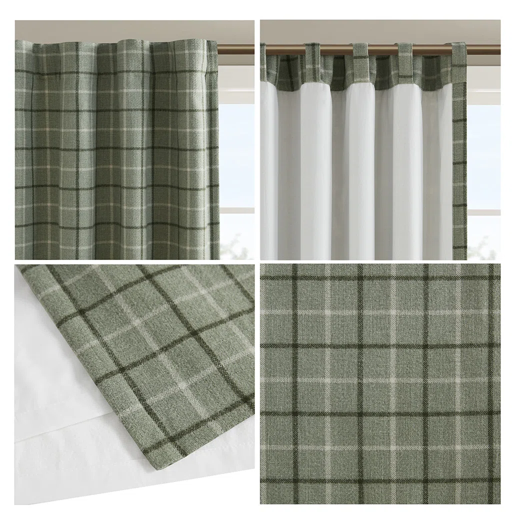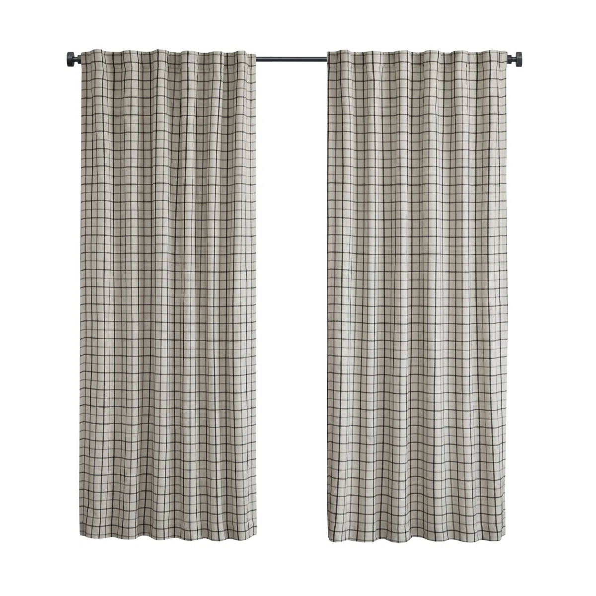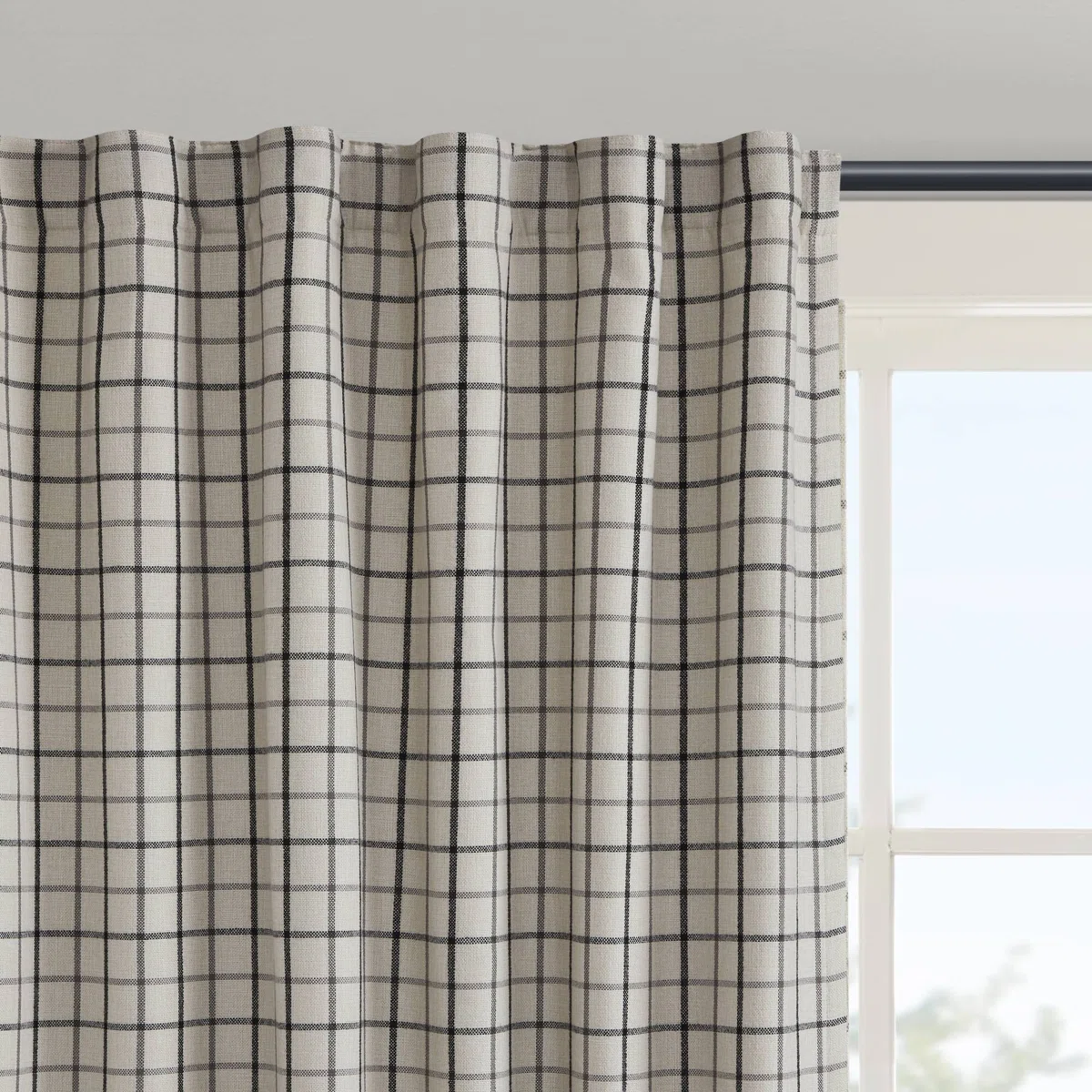 Add style, warmth, and privacy to your space with this Black Woven Plaid Room Darkening Curtain Panel. Designed with a classic plaid pattern and crafted from high-quality woven fabric, this panel brings a modern yet cozy feel to living rooms, bedrooms, and dining areas. The thermal fleece lining enhances insulation, helping block out sunlight, reduce noise, and improve energy efficiency. Its room-darkening performance makes it ideal for creating a comfortable environment—whether you're sleeping, relaxing, or working from home. With a generous length of 108 inches, this panel adds dramatic height to any room while providing full window coverage. Durable, stylish, and easy to hang, it’s a perfect upgrade for any home.