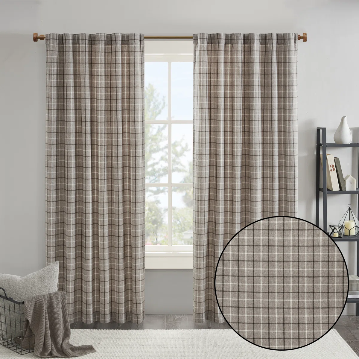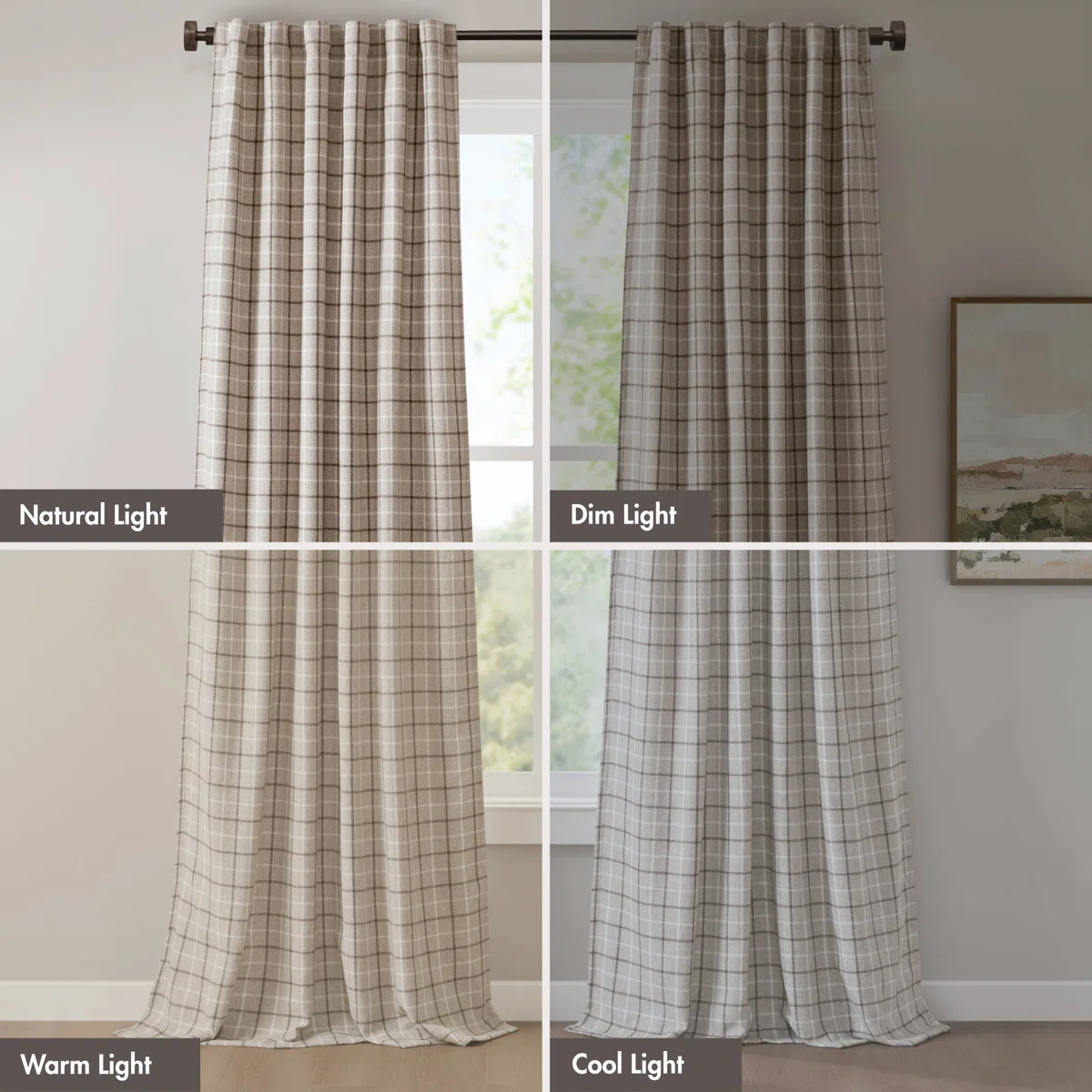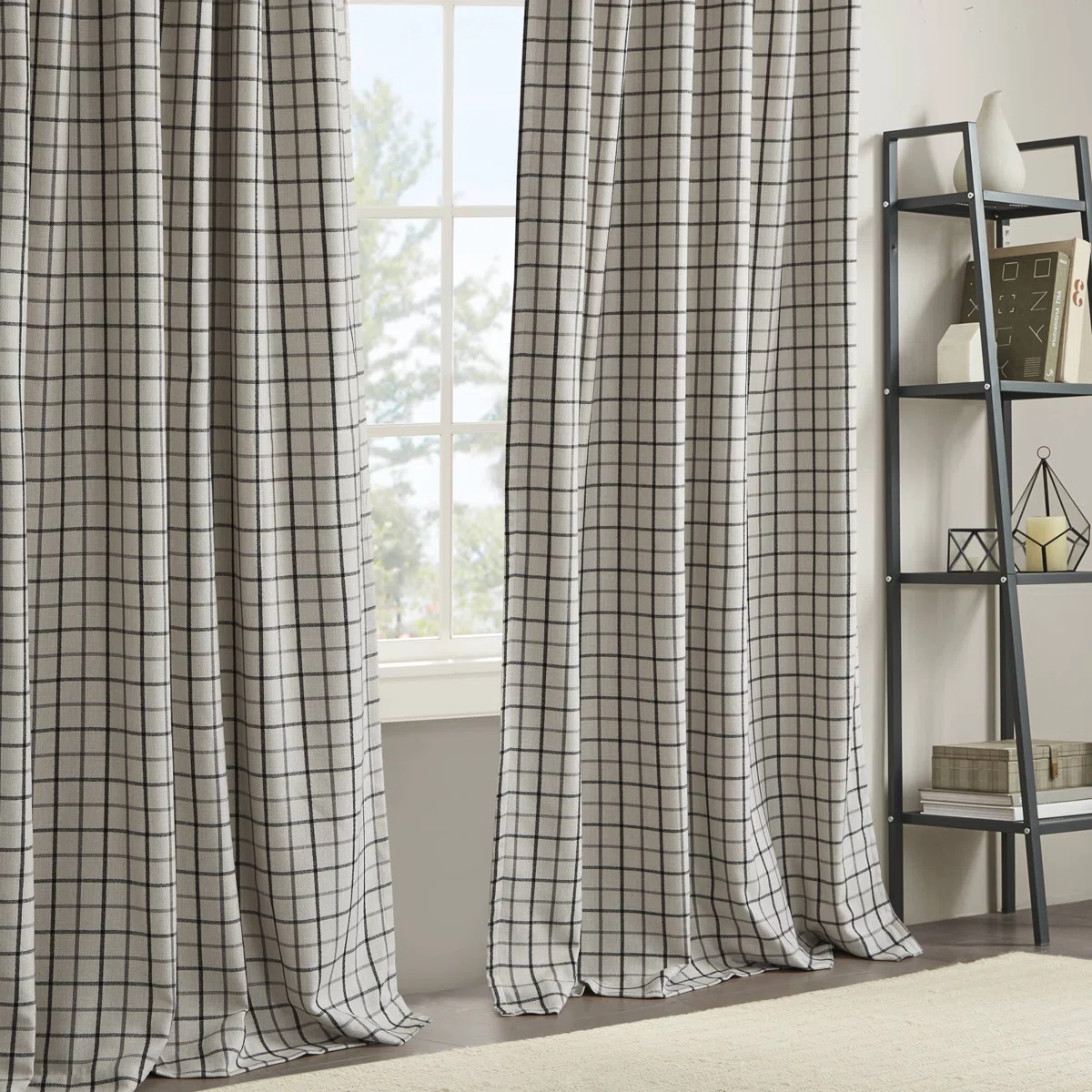 Add style, warmth, and privacy to your space with this Black Woven Plaid Room Darkening Curtain Panel. Designed with a classic plaid pattern and crafted from high-quality woven fabric, this panel brings a modern yet cozy feel to living rooms, bedrooms, and dining areas. The thermal fleece lining enhances insulation, helping block out sunlight, reduce noise, and improve energy efficiency. Its room-darkening performance makes it ideal for creating a comfortable environment—whether you're sleeping, relaxing, or working from home. With a generous length of 108 inches, this panel adds dramatic height to any room while providing full window coverage. Durable, stylish, and easy to hang, it’s a perfect upgrade for any home.
