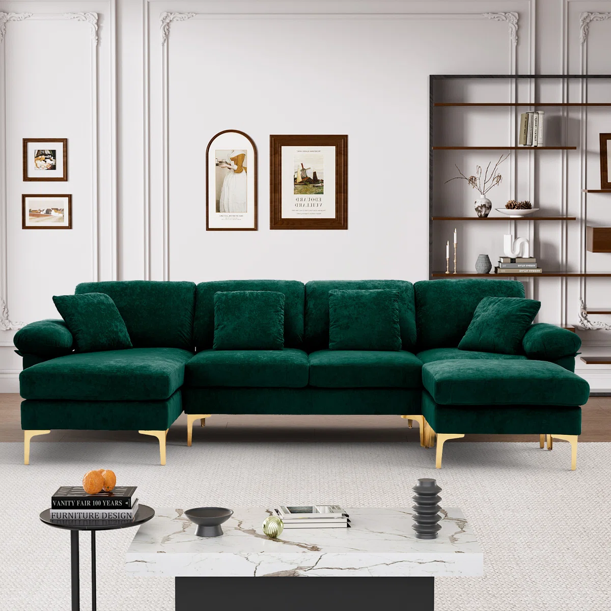 This 114” wide sectional sofa is ideal for a chic modern accent to your living room, bedroom, or home office. It’s made of solid plywood and features high-density foam padding and soft upholstery in a solid hue. This loveseat features a square back and pillow top arms; bracket legs in a gold-tone elevate the look. The removable ottoman can be combined with the sofa to form a U-shaped sofa with double chaise. Please check the bottom side of the A,B,C seat to get all other assemble parts.