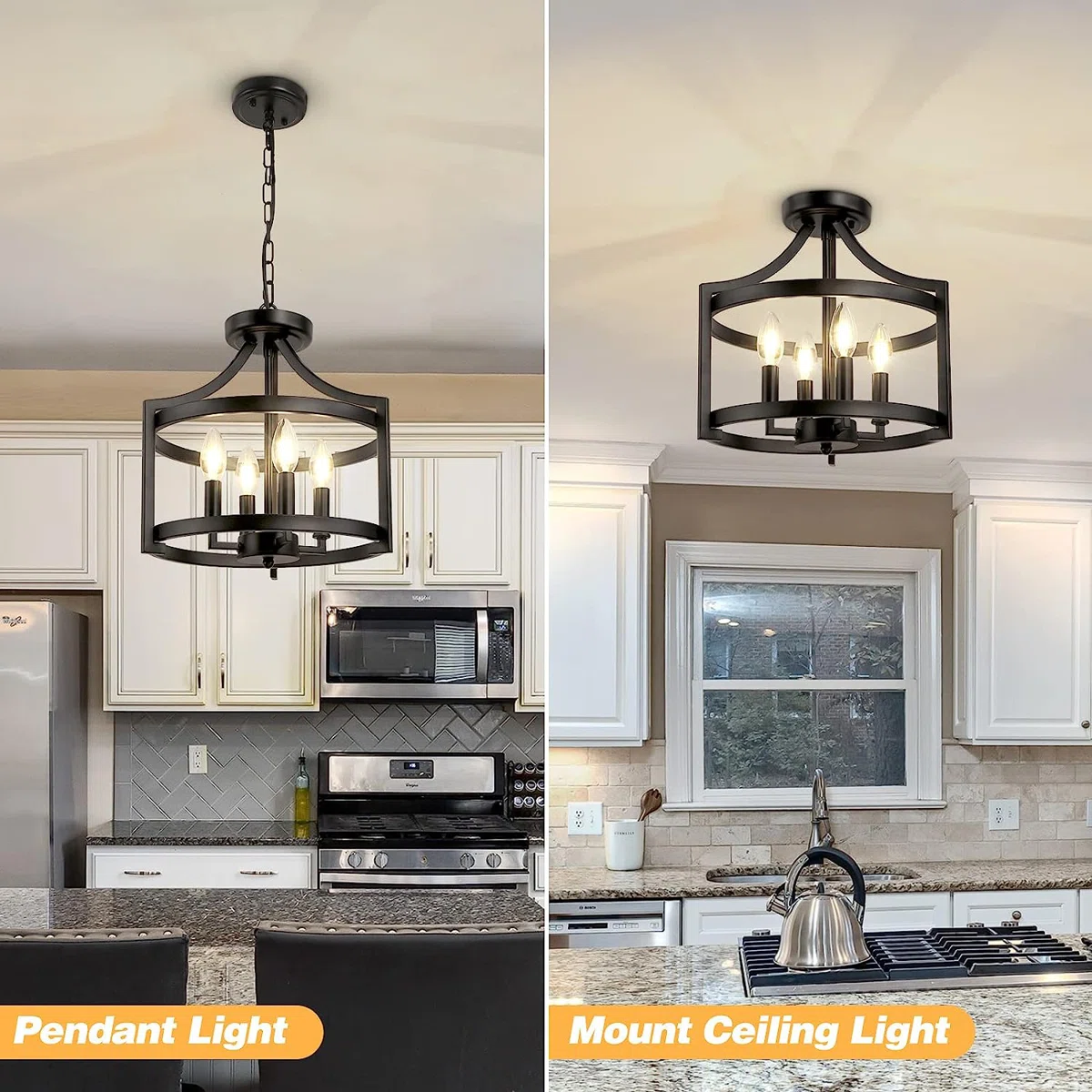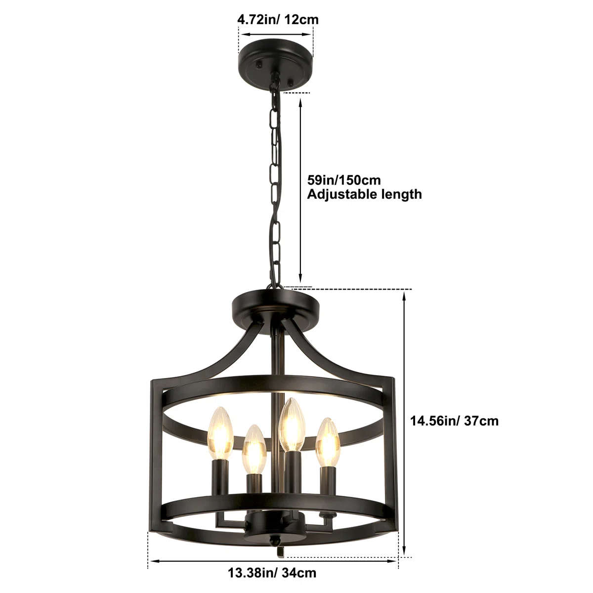 Elevate your home with the Aonesty 4-Light Lantern Chandelier, a stylish fusion of modern geometry and classic charm. Its open cage anchor-frame design forms a striking silhouette, while candle-style sockets add timeless character. With a removable 59" chain, this pendant easily transitions between chandelier-style hanging or a flush-mounted look for low ceilings. Fully dimmable, smart-home compatible, and simple to install, it’s a versatile lighting solution for kitchens, dining rooms, foyers, hallways, and more. Designed to work on flat, sloped, vaulted, or slanted ceilings, this statement fixture enhances any space with warm ambiance and contemporary elegance.