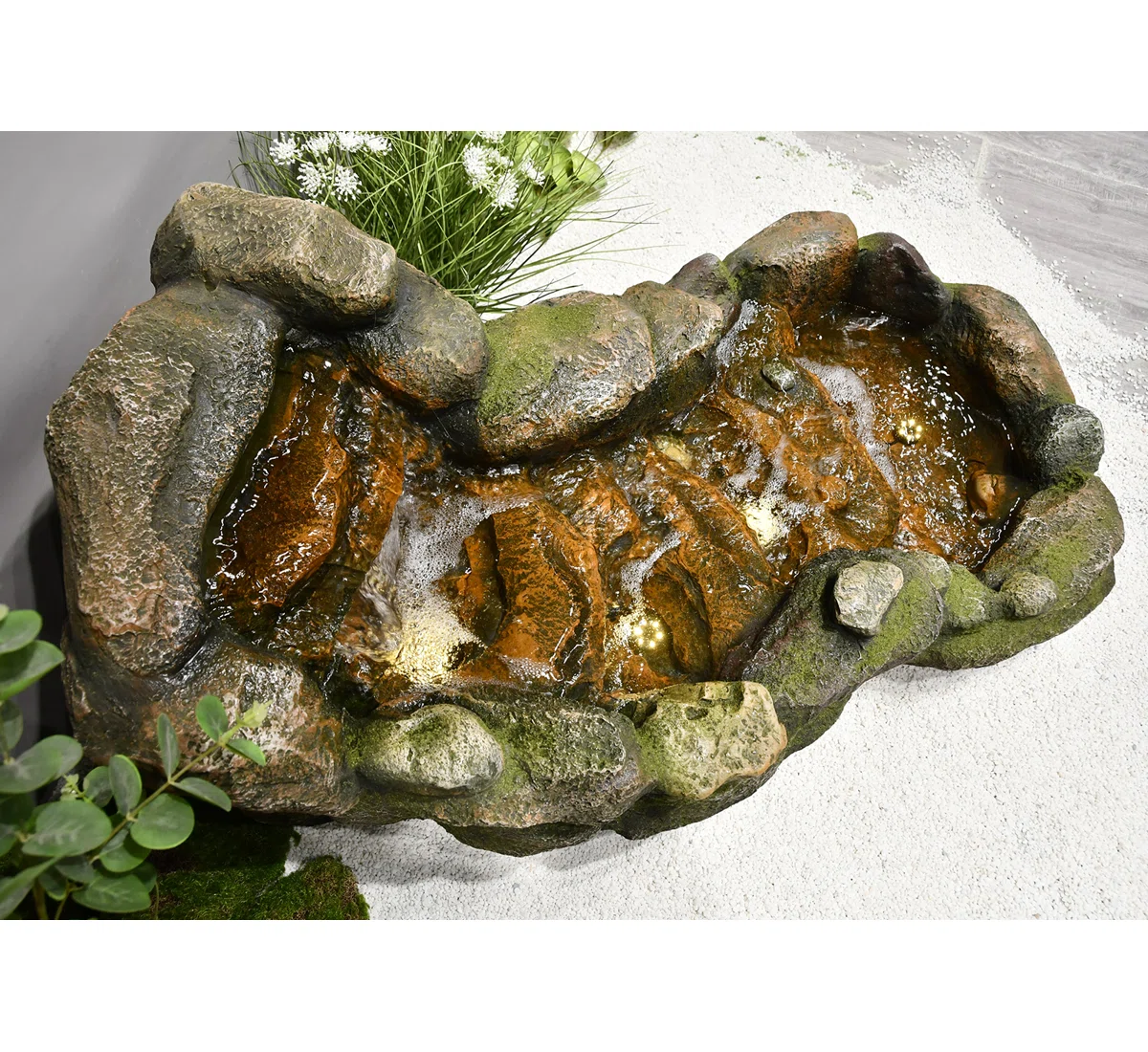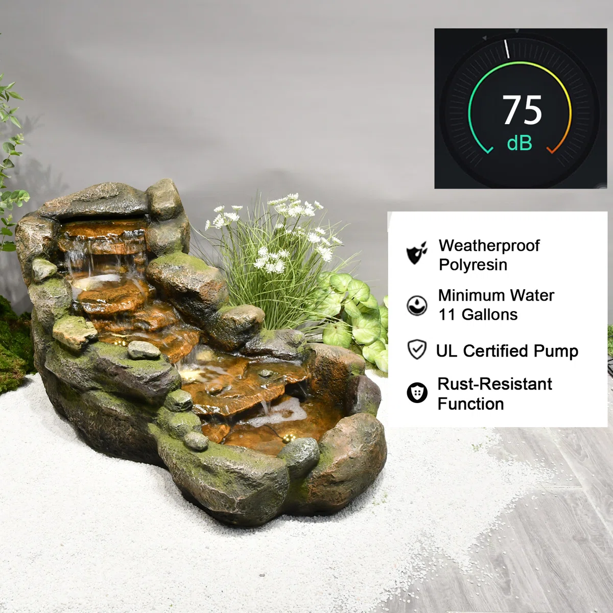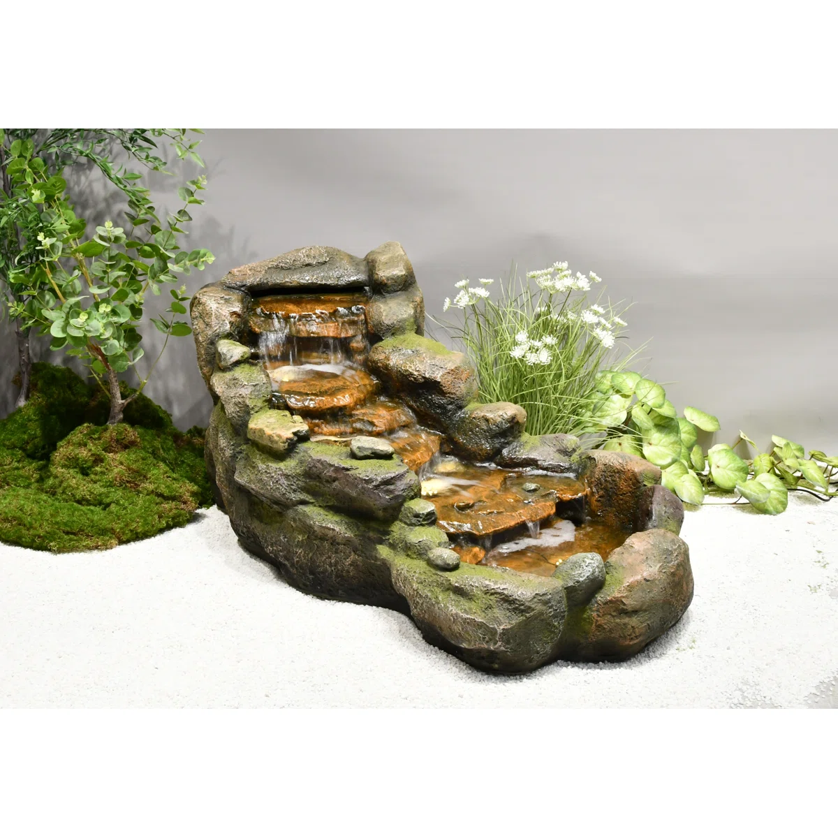 Bring tranquility and charm to your outdoor space with the Arani Weather Resistant Floor Fountain with Light. Expertly handcrafted from durable resin with a natural stone finish, this fountain is weatherproof, rust-resistant, and built to last, making it ideal for patios, gardens, porches, or lawns.