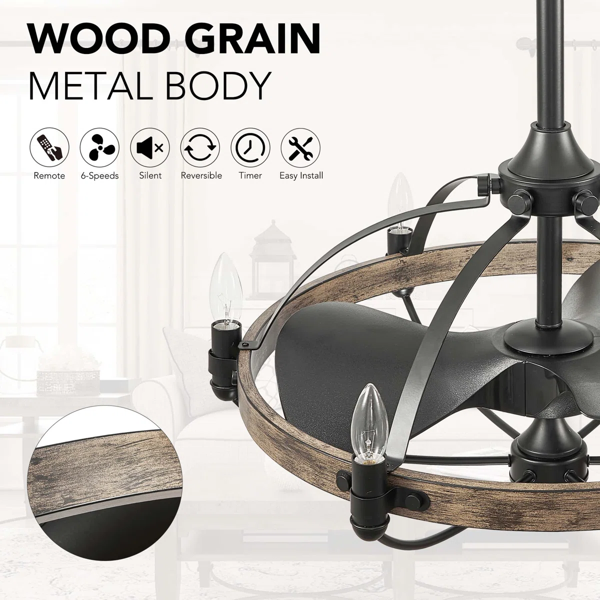 Arezo 27.17" Classic Black Caged Farmhouse Ceiling Fan With Light Kit And Remote Control