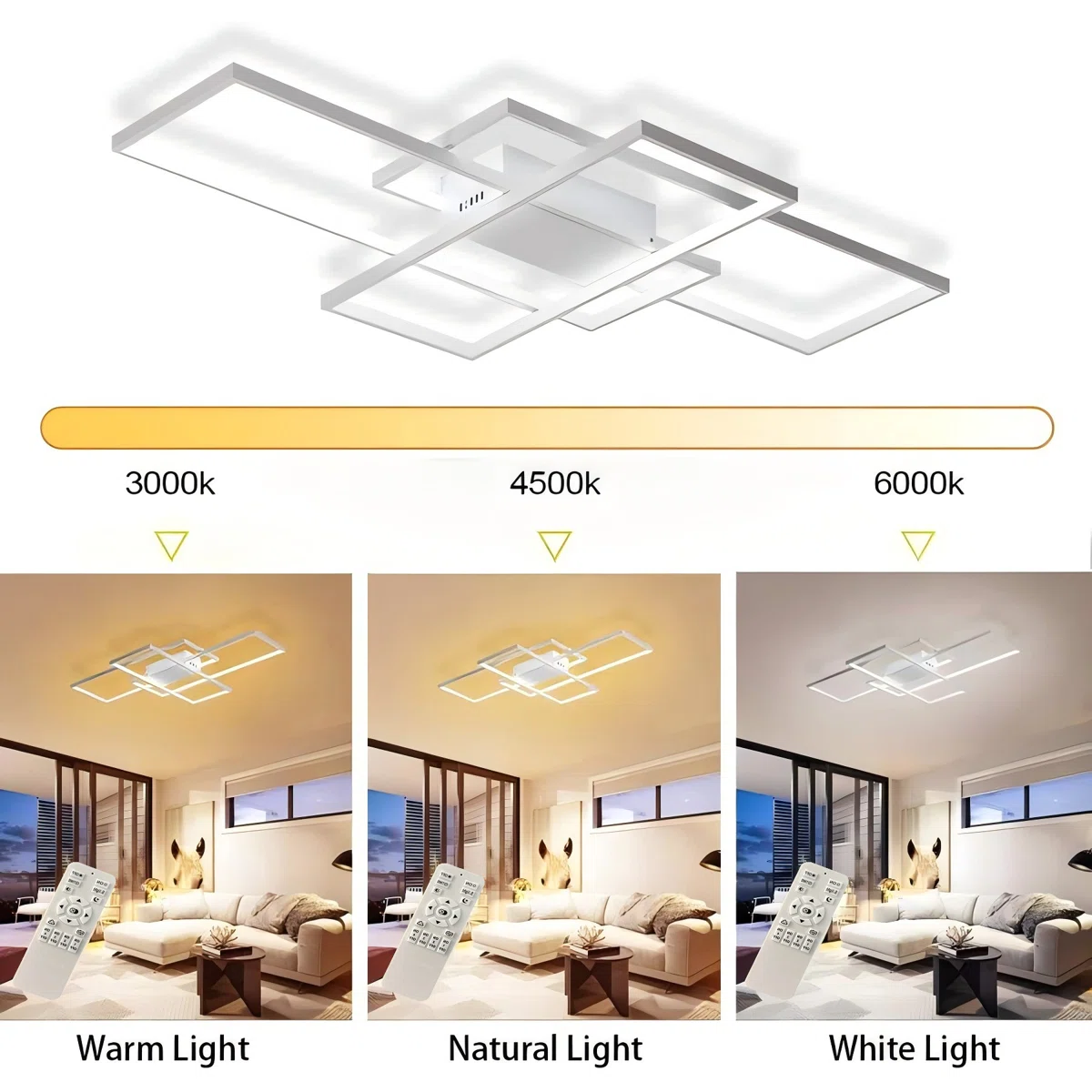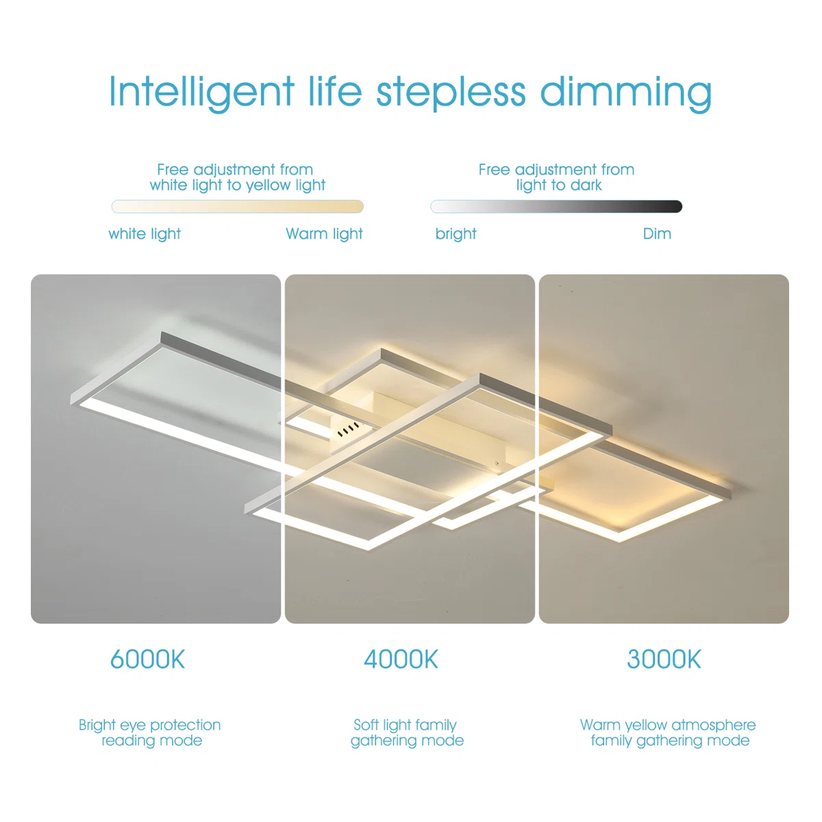 - This square LED chandelier lighting fixture is step-less dimming (cool white light - natural light - warm white light). With the remote control, you can adjust the brightness and color. Through the remote control device, the color gradually changed from warm white 3000K to cool white 6500K. The ordinary wall switch can only control three colors, but not brightness.