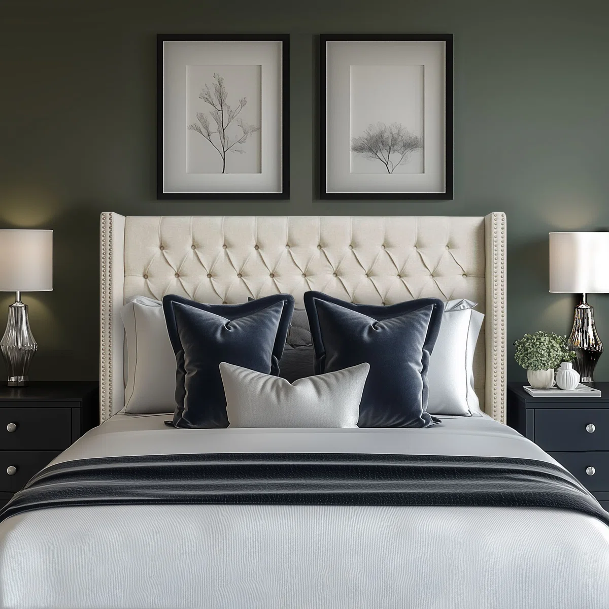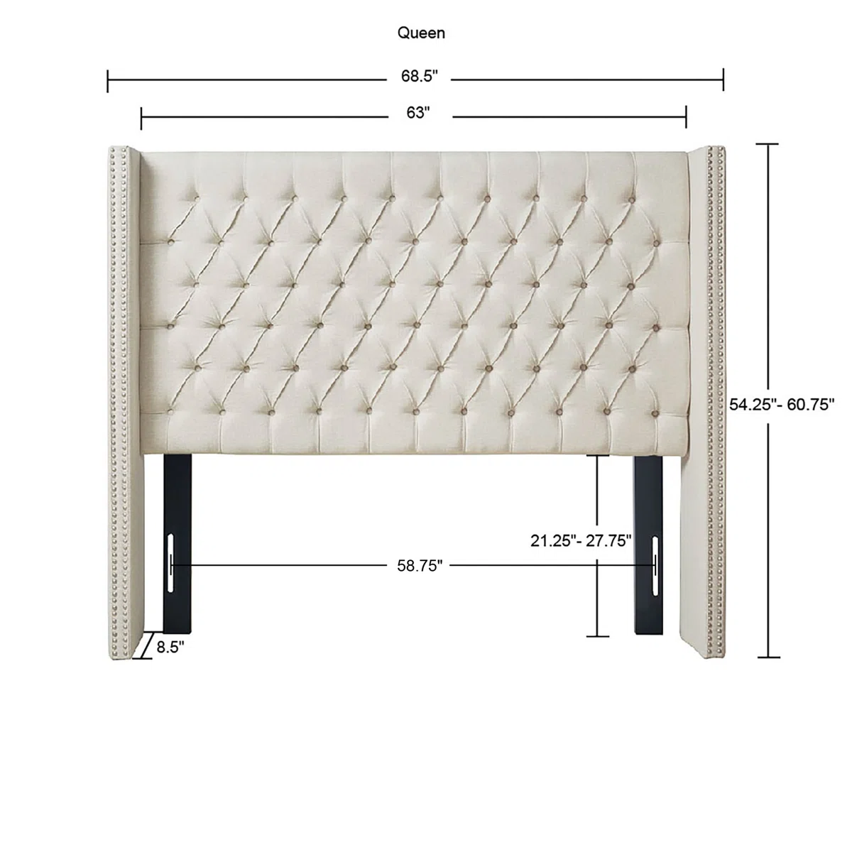 Ashwin Upholstered Wingback Headboard - Button Tufting & Nailhead Trim