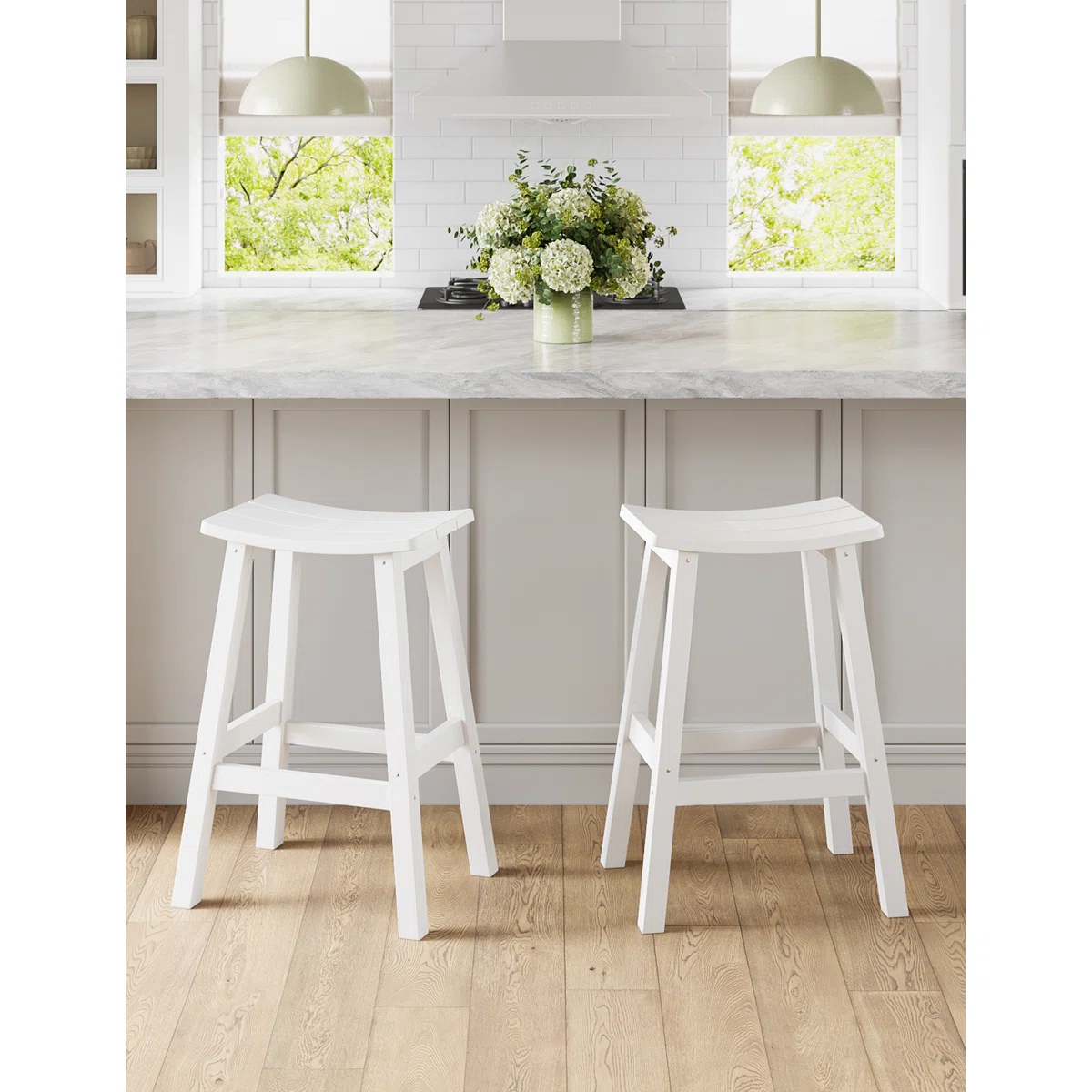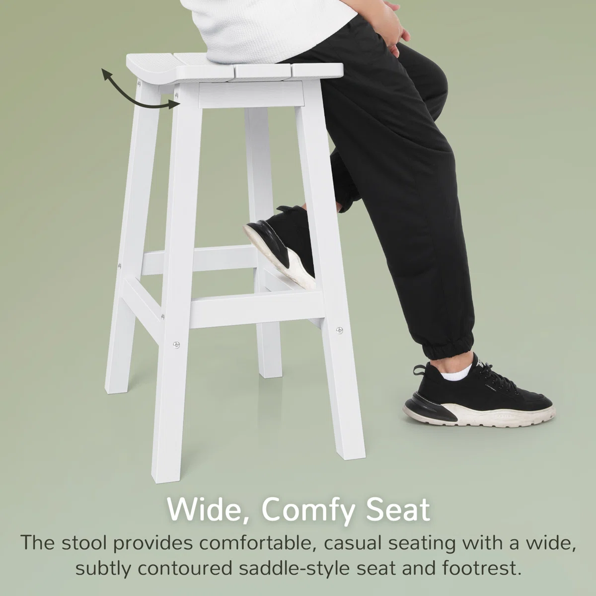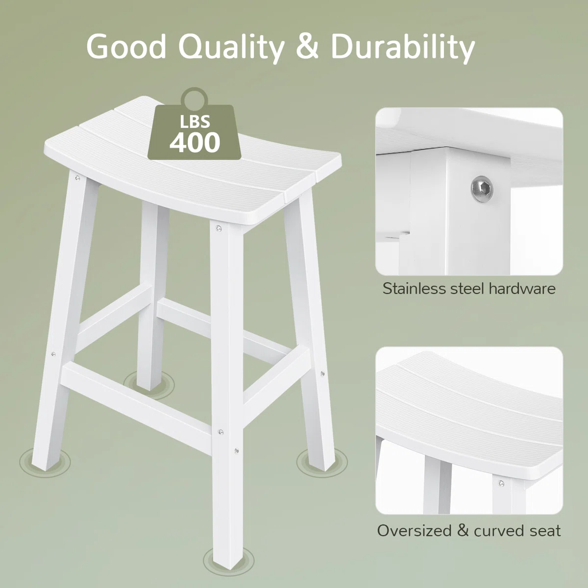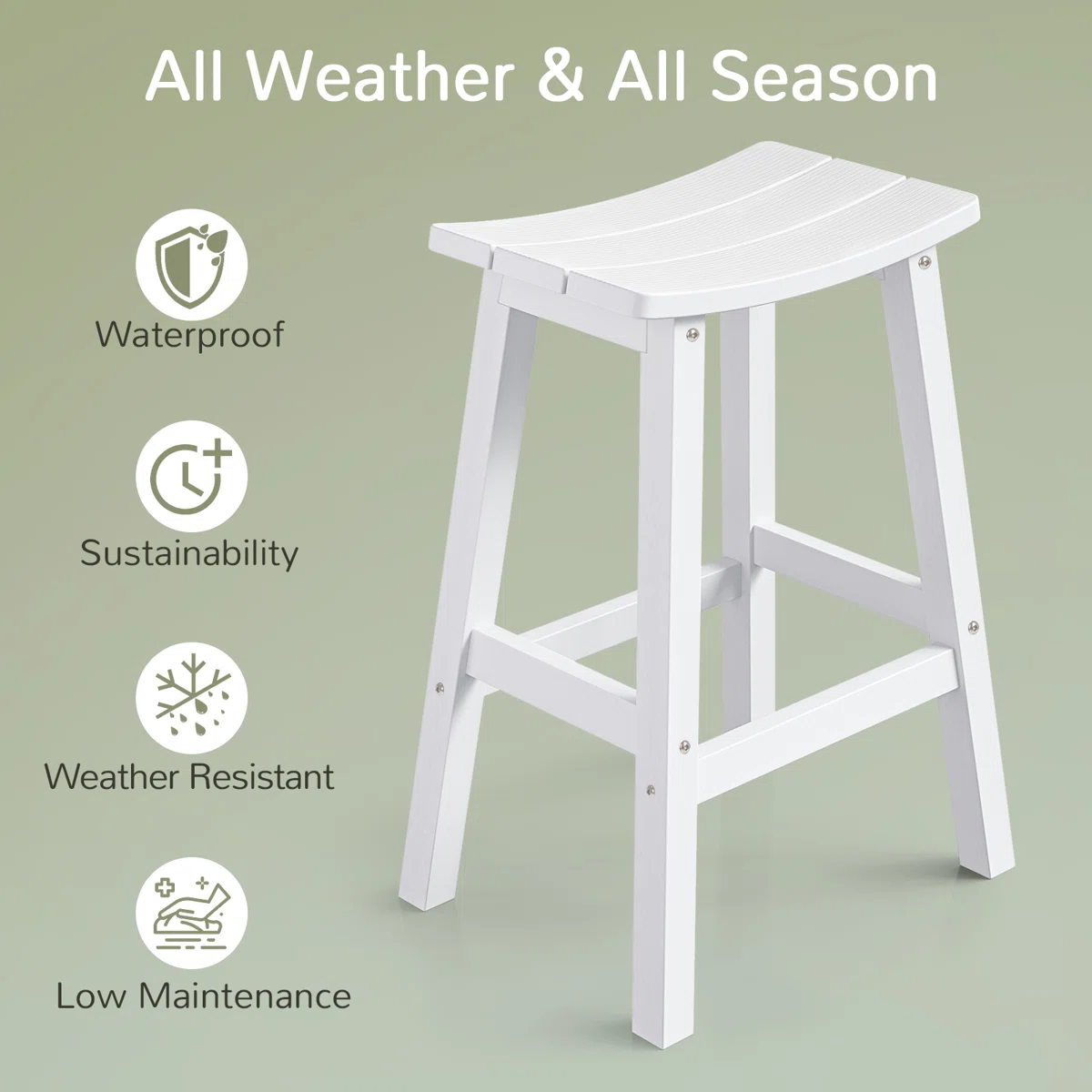 Upgrade your indoor or outdoor seating with this Bar Stools Set of 2, designed for long-lasting comfort and durability. These all-weather counter stools feature a contoured saddle-style seat that ensures ergonomic support, perfect for kitchen counters, patios, or outdoor bars. Crafted from high-quality HIPS (High Impact Polystyrene) material, they are engineered to resist fading, cracking, peeling, or rotting, even in extreme weather conditions—from sunny days to snowy winters.