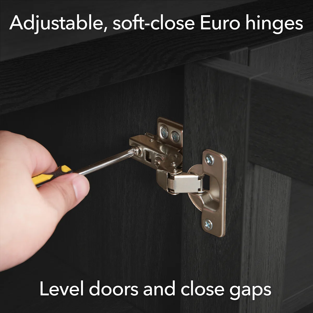• Media storage included; flush door design with magnetic catches