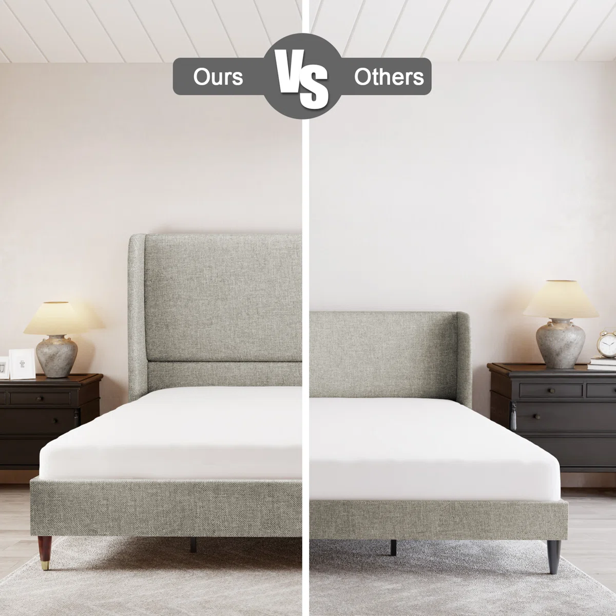 Redefine your bedroom’s elegance with the Belo Upholstered Low Profile Platform Bed, a stunning combination of modern style and timeless comfort. Upholstered in soft, high-quality linen fabric, this bed features a 51.2-inch tall wingback headboard with vertical channel tufting and plush foam padding, creating a cozy yet sophisticated backdrop for relaxation.