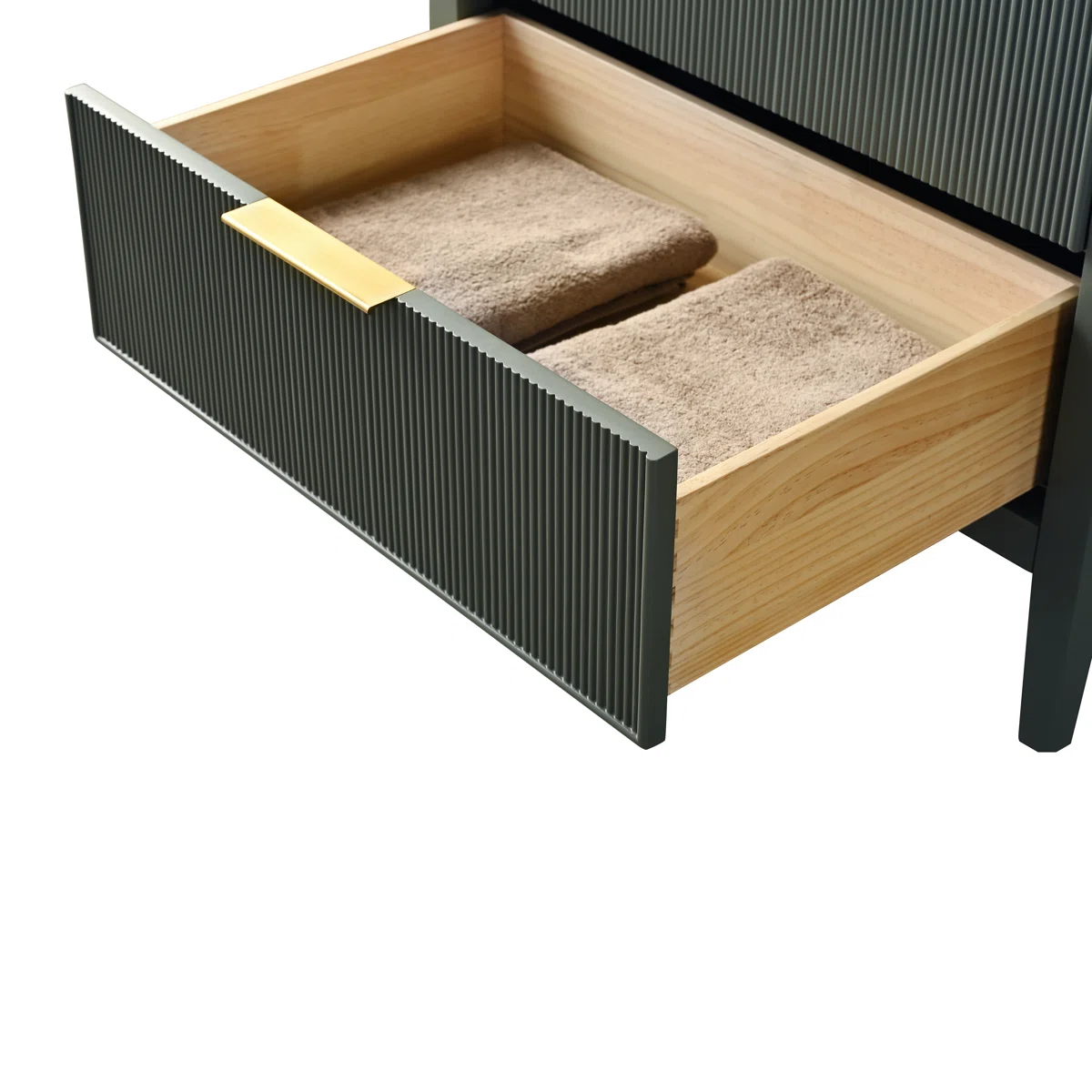 Perfect for compact bathrooms, this vanity offers two spacious soft-close drawers for storing toiletries, towels, and essentials. The U-shaped drawer design provides smart plumbing clearance without sacrificing space. Complete with an undermount ceramic sink and multiple color options (Black, White, Taupe, Vintage Blue, and Vintage Green), the Bilroy Egremt vanity blends beauty with practicality for a refined bathroom upgrade.