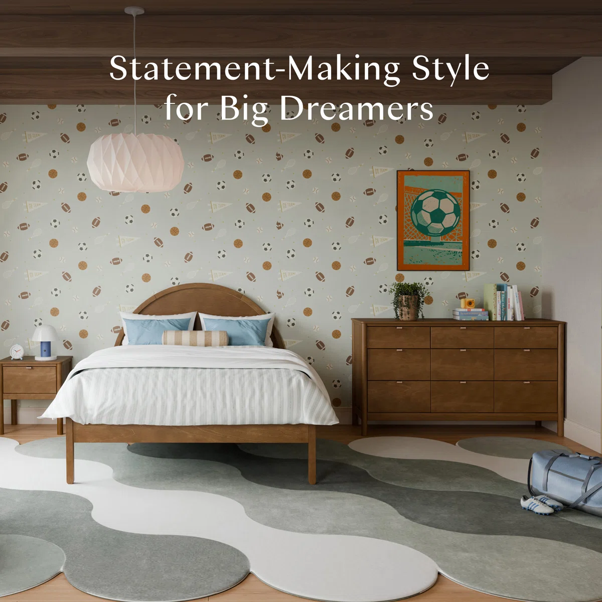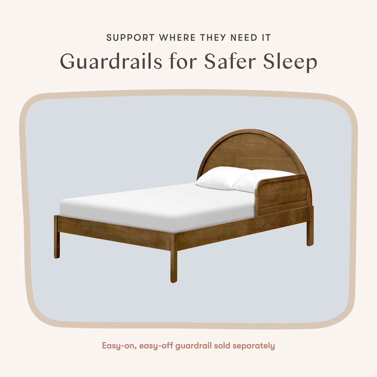 The Bondi Full Bed by babyletto brings a warm boho-inspired style to any kid’s bedroom. Crafted from sustainably sourced solid poplar wood and TSCA compliant MDF, this bed features a softly arched headboard natural cane accents and rounded feet for a stylish yet functional design. GREENGUARD Gold certified for low chemical emissions and finished in a non-toxic multi-step painting and staining process, it ensures a safe and healthy sleeping environment. Designed to fit a standard full mattress without a box spring, the Bondi Bed pairs perfectly with optional guardrails and the Twin Storage Trundle Bed for added sleepovers and storage solutions.