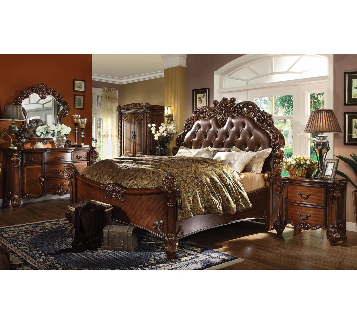 A tall headboard adds a bold style element.