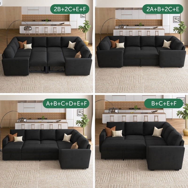 Compatible with other modules: A (single seat), B (pull-out bed), C (corner seat), D (ottoman), E (armrest), F (loveseat)