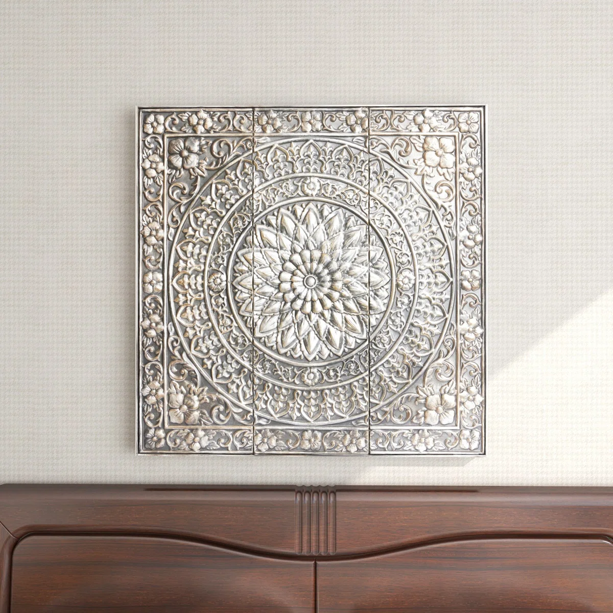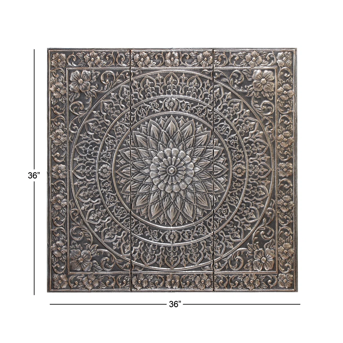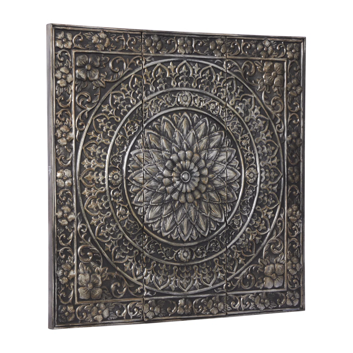Add timeless elegance and rustic charm to your home with the Cvitko Metal Embossed Scroll Floral Wall Decor with Gray Backing, a stunning decorative accent that brings warmth, texture, and artistry to any wall. Crafted from solid iron, this beautifully detailed wall sculpture showcases intricate floral and scrollwork embossing on a weathered gray and silver finish — perfect for enhancing farmhouse, vintage, or rustic interior styles.