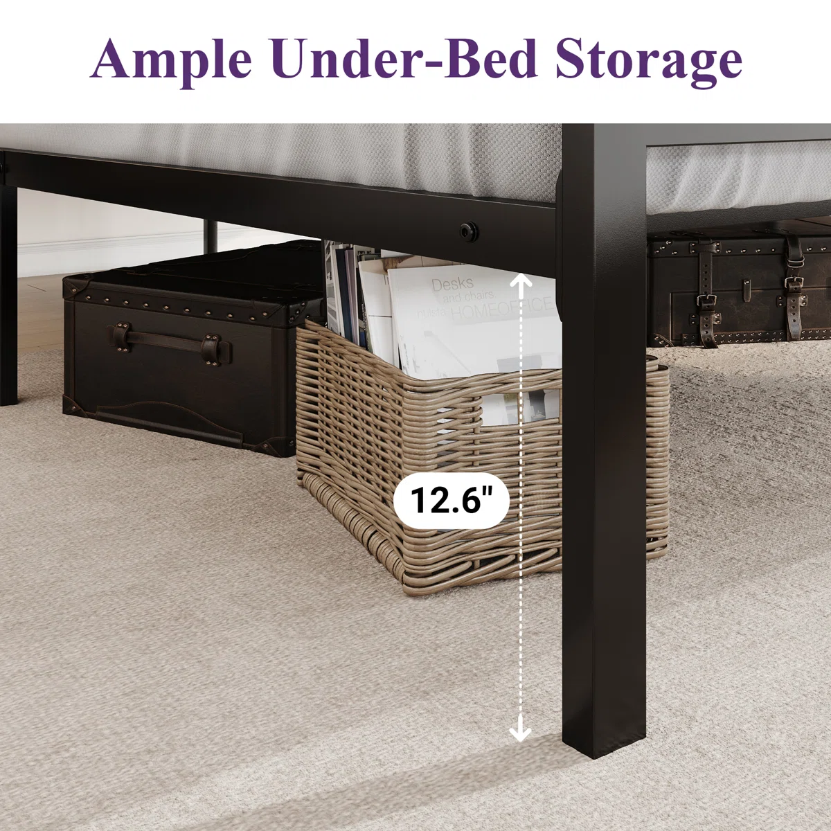 12.6" under-bed clearance for storage boxes, bins, or extra items