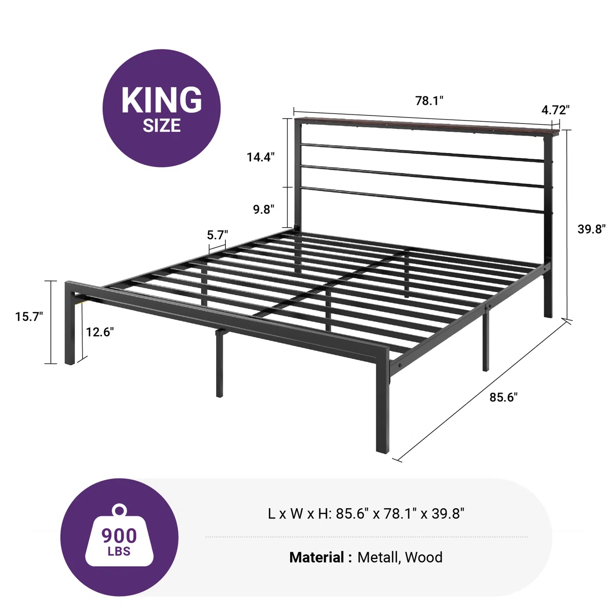 The frame includes 12 sturdy metal slats supported by five center legs and EVA foam to absorb sound, eliminating the need for a box spring while ensuring a quiet and comfortable sleep. With 12.6" of under-bed clearance, you can store bins or boxes to maximize space in your bedroom. Designed for easy assembly, this full/double bed supports up to 800 lbs and is ideal for apartments, guest rooms, or master bedrooms with a modern aesthetic.