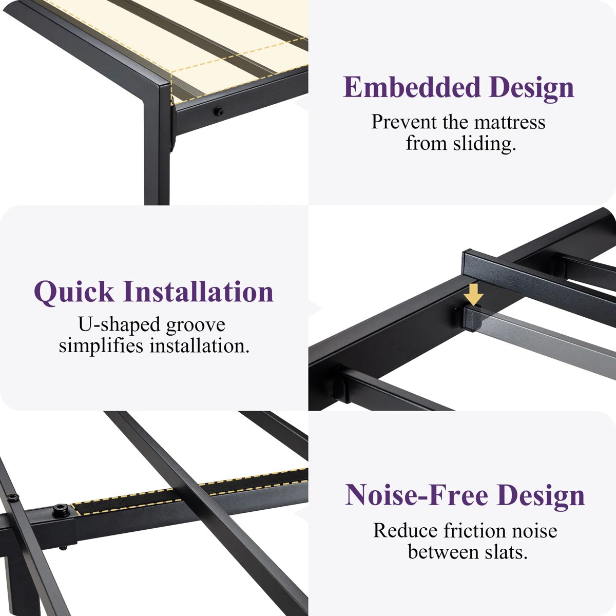 12 metal slats with EVA foam for quiet and supportive sleep