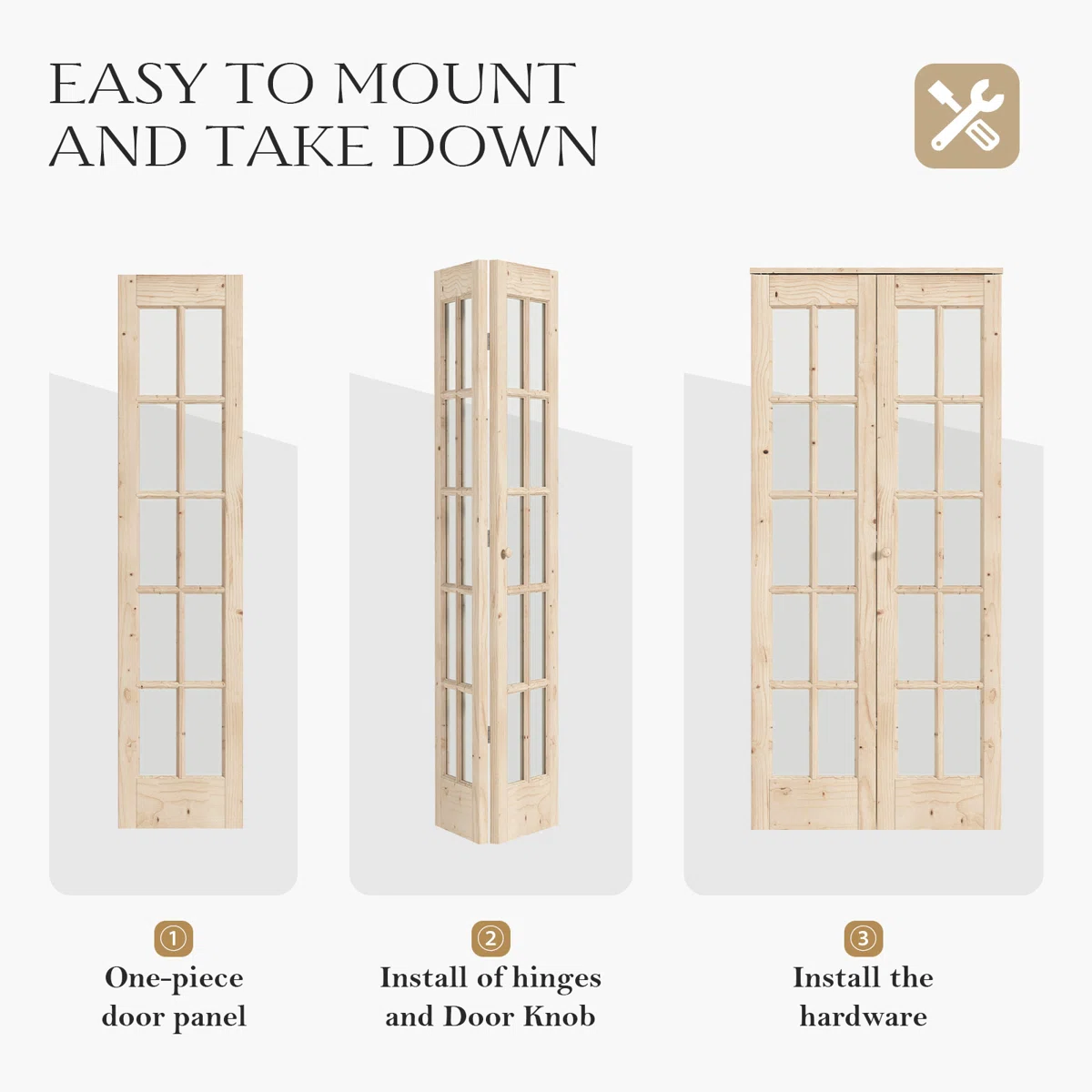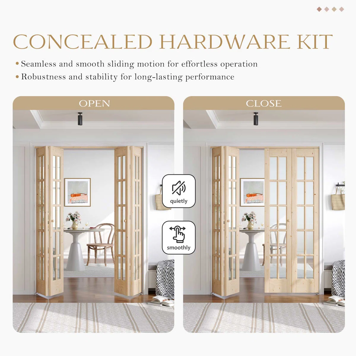 Upgrade your home’s interior with the EASELIFE 24"x80" Glass and Solid Wood Bi-Fold Door, a stylish and space-saving solution for modern homes. This premium-quality door combines solid wood craftsmanship with glass panel inserts, creating a light and airy aesthetic while maintaining privacy. It comes complete with an installation hardware kit for easy setup — ideal for closets, laundry rooms, or passageways.