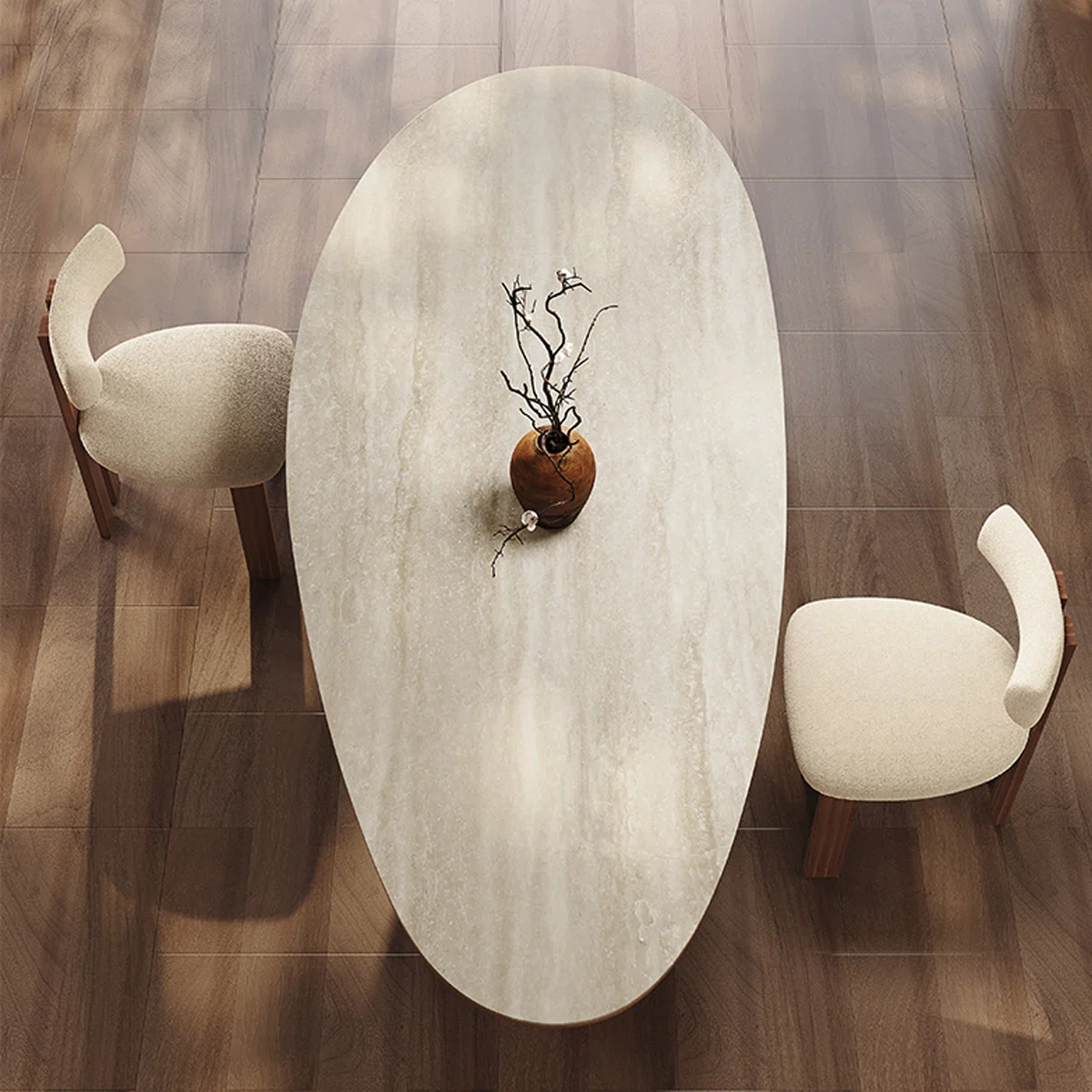 Elevate your dining space with the French Fashion Simple Free-Form Dining Table, a perfect blend of elegance and durability. Featuring a sintered stone tabletop, this table offers superior resistance to heat, scratches, and stains—making it as practical as it is beautiful. The unique water-drop shape adds a sculptural touch that enhances any modern, minimalist, or French-inspired interior. Supported by a solid wood arched base, it ensures remarkable stability and strength, creating a comfortable dining experience with ample legroom. Ideal for family gatherings or upscale dining rooms, this table combines craftsmanship and style in one stunning centerpiece.
