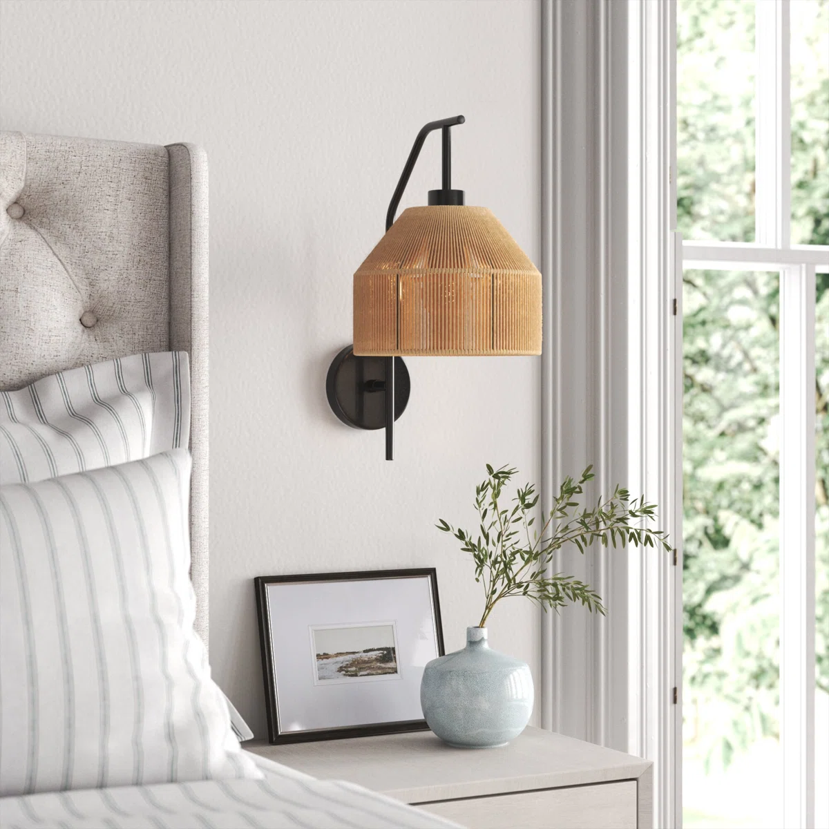 Elevate your interior décor with the Latitude Run® Amalfi Wall Lamp, a perfect blend of modern style and functional lighting. Finished in a sleek black tone, this eye-catching fixture instantly enhances any room with its contemporary charm. The standout feature is its dome-shaped rope shade, a unique design element that adds texture, warmth, and visual depth to your space. Standing 18 inches tall, the Amalfi wall lamp makes a bold statement while providing ample illumination, ideal for entryways, living rooms, bedrooms, or reading corners. Designed to be hardwired, it delivers a clean, minimalist look with no exposed cords—perfect for a polished, upscale interior. This elegant fixture is also compatible with wall dimmers, allowing you to customize the ambiance from bright and functional to soft and cozy. Whether you’re creating a focal point or enhancing your existing décor, the Amalfi wall lamp offers the perfect balance of style and practicality. Transform your home with a lighting piece that combines modern artistry with everyday usability.