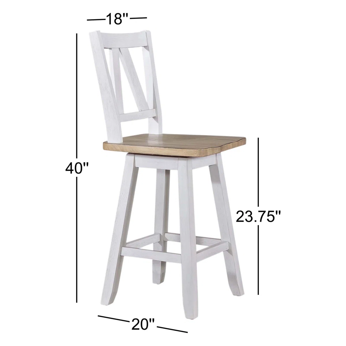 24-inch seat height suitable for standard kitchen counters.