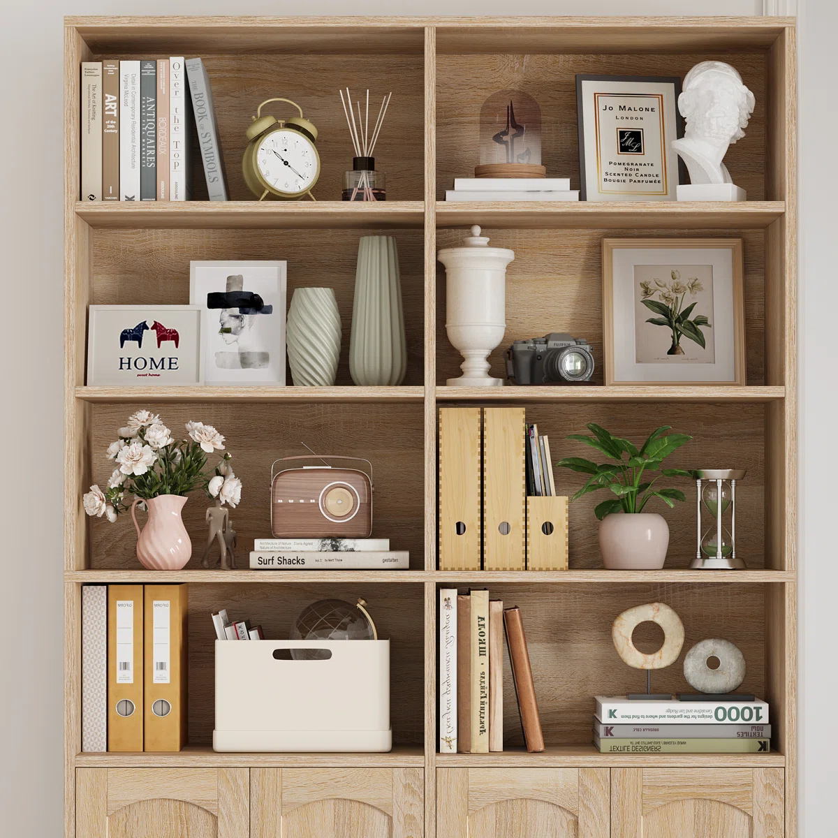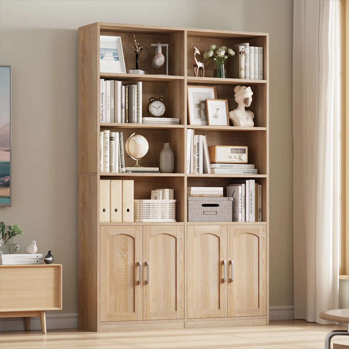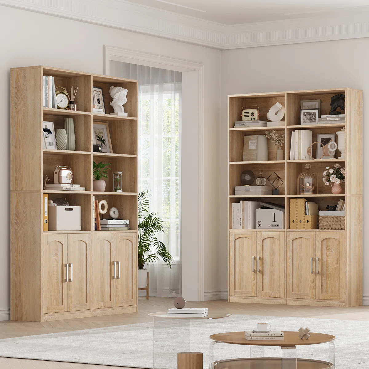 Keep your workspace tidy and stylish with the Harriet Bee Kirklyn 73” Storage Bookcase with Doors, crafted in a warm oak finish. This tall standard bookcase offers eight open shelves for books, décor, and office essentials, plus two lower cabinet doors for concealed storage. Perfect for home offices, study areas, or living rooms, it combines functionality with timeless design. Built for durability and organization, it enhances any interior with its clean lines and ample capacity.