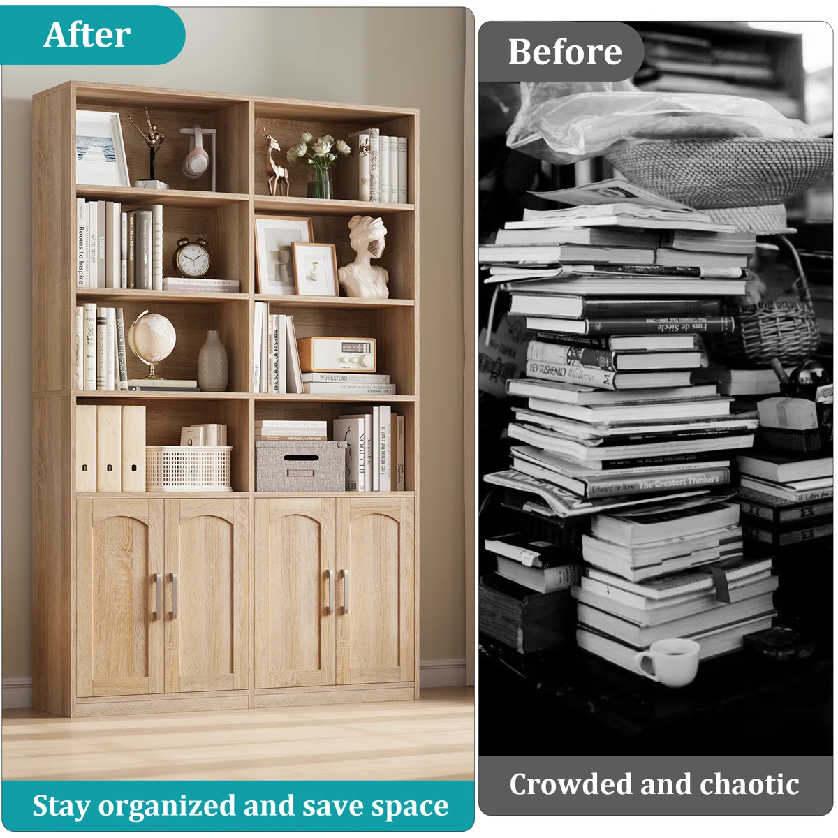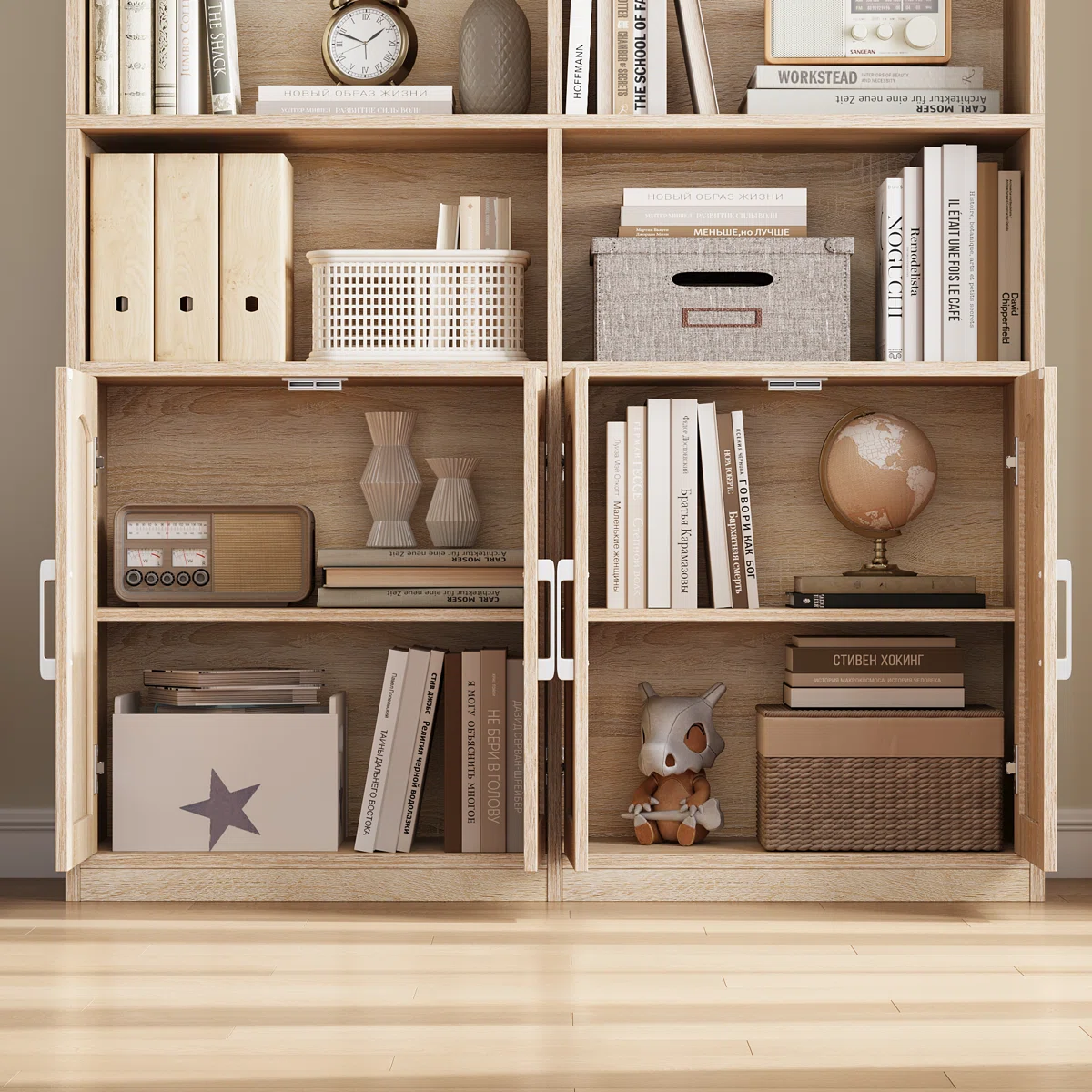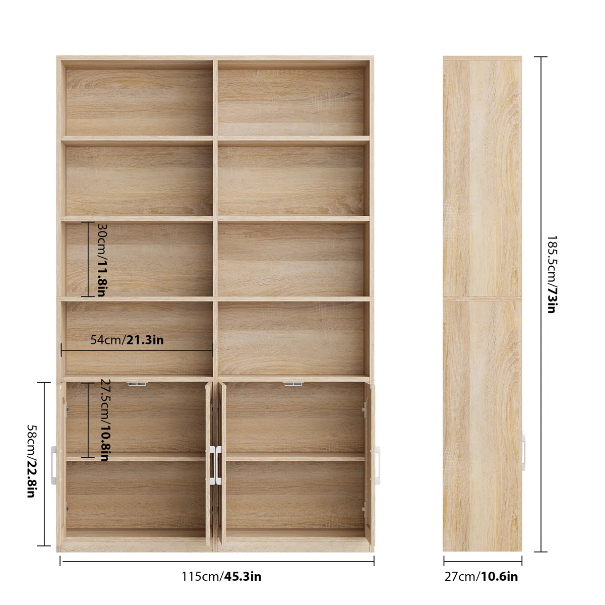 Keep your workspace tidy and stylish with the Harriet Bee Kirklyn 73” Storage Bookcase with Doors, crafted in a warm oak finish. This tall standard bookcase offers eight open shelves for books, décor, and office essentials, plus two lower cabinet doors for concealed storage. Perfect for home offices, study areas, or living rooms, it combines functionality with timeless design. Built for durability and organization, it enhances any interior with its clean lines and ample capacity.