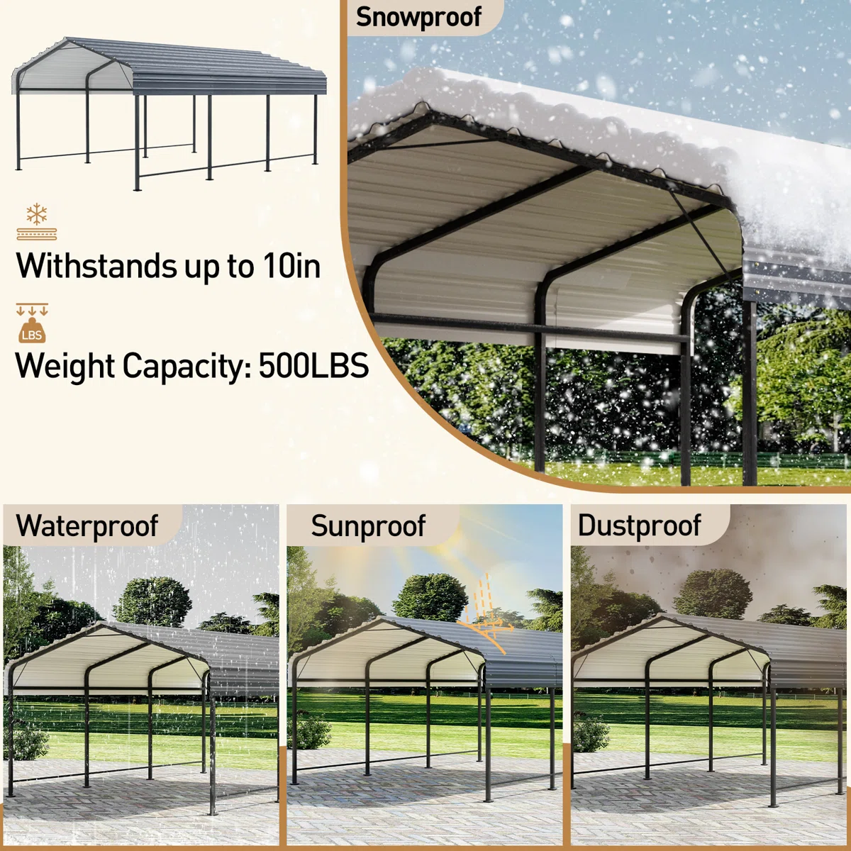 Protect your vehicles and outdoor equipment with the COSIEST Heavy Duty Carport. Built with a robust galvanized steel frame and roof, this carport provides superior protection against sun, rain, snow, and other environmental hazards. Its A-frame hardtop roof ensures durability, while the rust-resistant steel and weatherproof construction offer long-lasting reliability. Ideal for cars, trucks, RVs, boats, or as an outdoor storage/workspace, this carport combines practicality with low-maintenance, year-round protection.