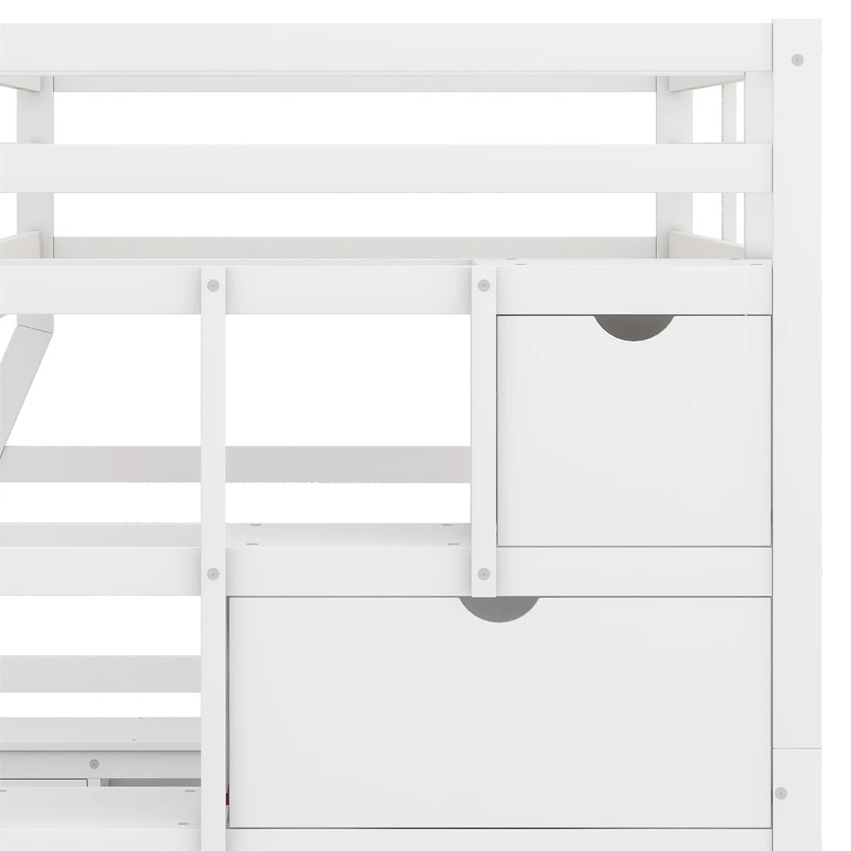 This loft bed also includes full-length guardrails for added safety, wide stair steps for secure climbing, and a slat system that eliminates the need for a box spring. Thoughtfully designed for functionality and charm, the Heiki Storage Loft Bed brings together practicality, creativity, and timeless design — perfect for growing kids and modern homes.