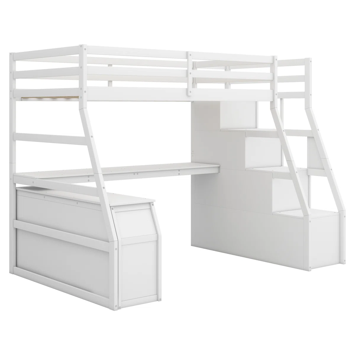 Maximize space and style in your child’s bedroom with the Heiki Storage Loft Bed with Desk and Stairs — a multifunctional furniture piece designed for comfort, safety, and smart organization. This all-in-one loft bed features a durable solid pine wood frame that ensures long-lasting stability and strength, while the sleek modern finish complements any décor theme.