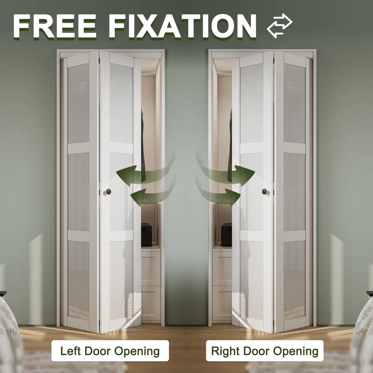 Upgrade your closet or pantry with the HOZONE LuminaMatte™ 3-Lite Glass Solid Wood Bi-Fold Door. Measuring 30" x 80", this stylish door features frosted glass panels and a durable manufactured wood construction. The included installation hardware kit ensures easy setup, making it a perfect solution for modern interiors while providing both functionality and aesthetic appeal.