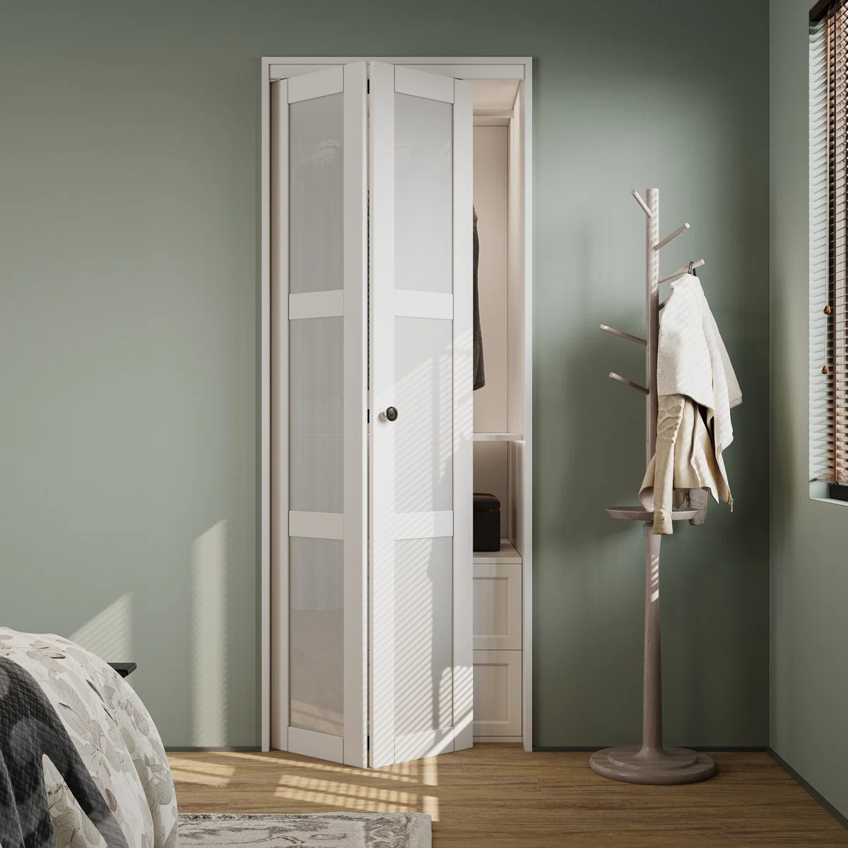 3-lite frosted glass panels for a modern look.