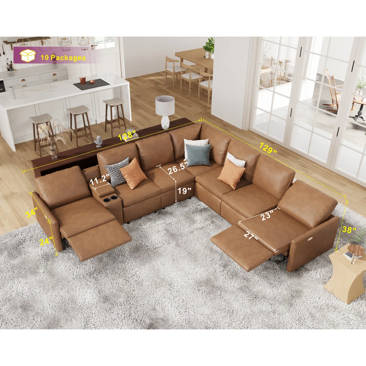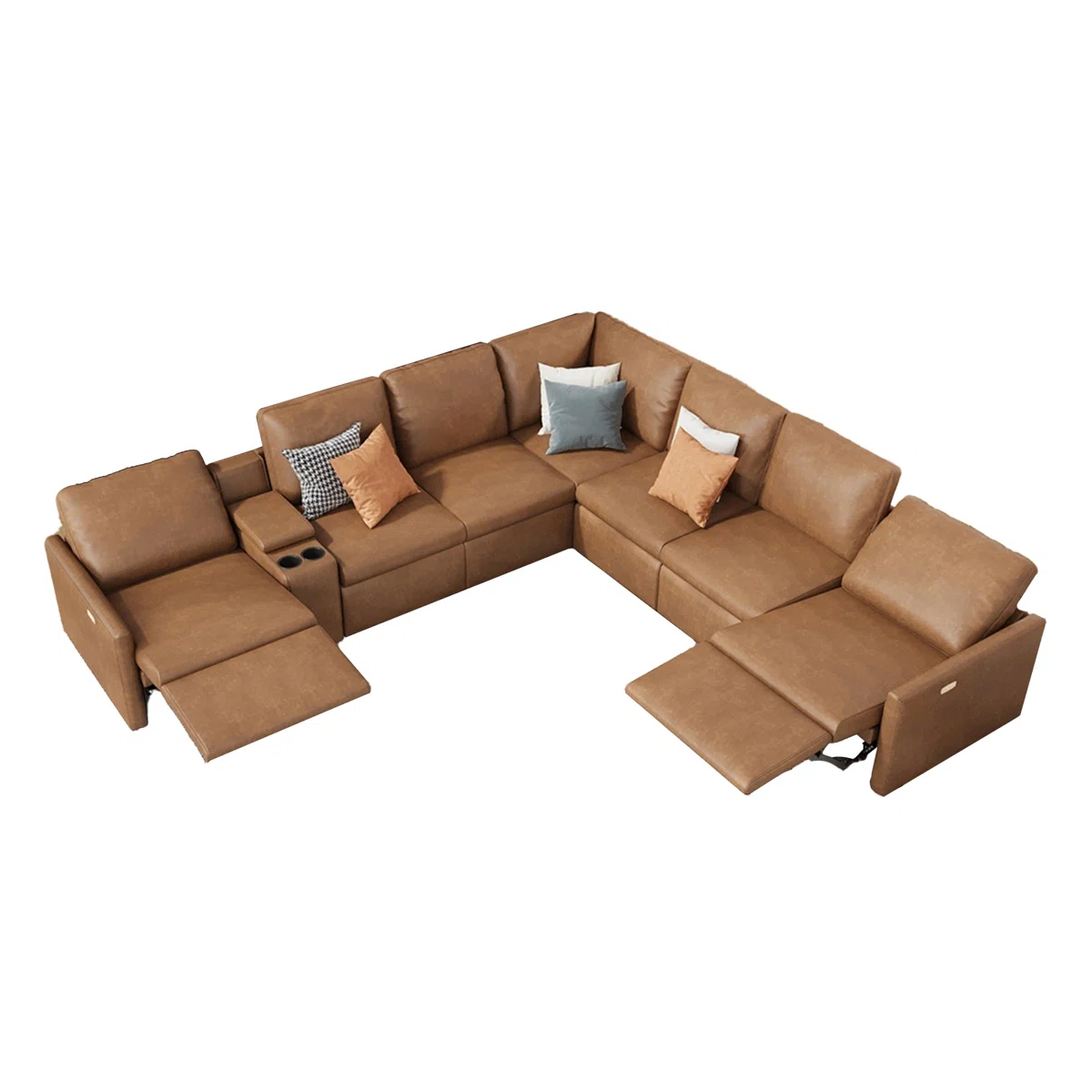 Relax in style with the Latitude Run® Power Recliner L-Shaped Sofa. This 7-seat sectional features high-quality leather upholstery and power reclining seats, making it ideal for living rooms or entertainment spaces. Integrated cup holders and USB charging ports provide convenience, while the L-shaped design maximizes seating and comfort. Perfect for modern homes, this sectional combines durability, functionality, and contemporary design.