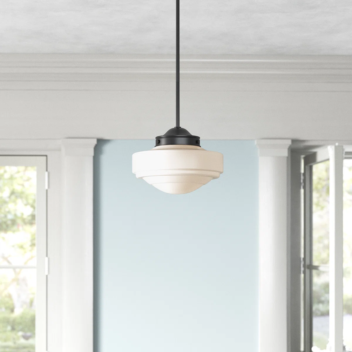 Add timeless charm and soft illumination to your home with the Ingalls 1-Light Schoolhouse Pendant, a perfect blend of classic design and modern functionality. Featuring a handcrafted glass schoolhouse-style shade, this pendant light beautifully diffuses light to create a warm, inviting atmosphere in any space.