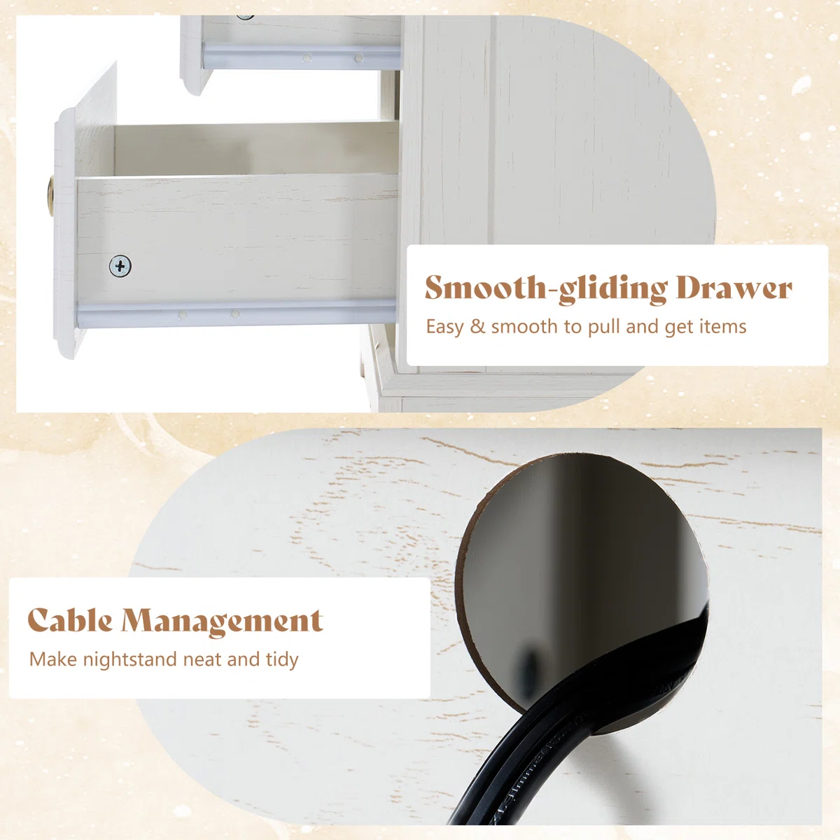 Cord Management: Built-in hole keeps cables organized and tangle-free.