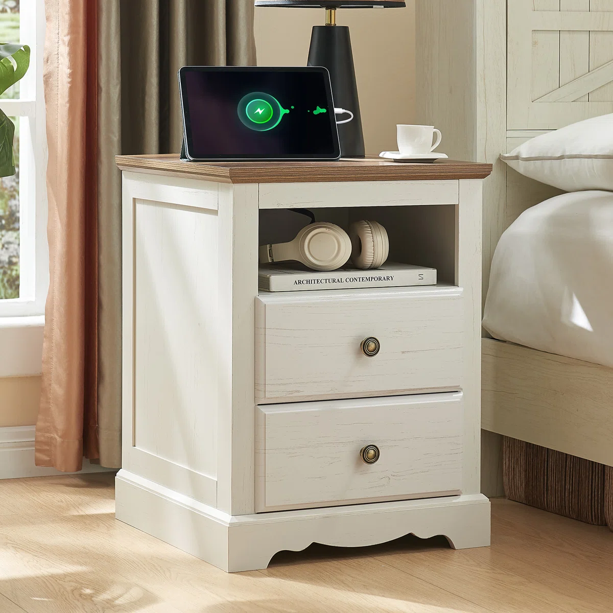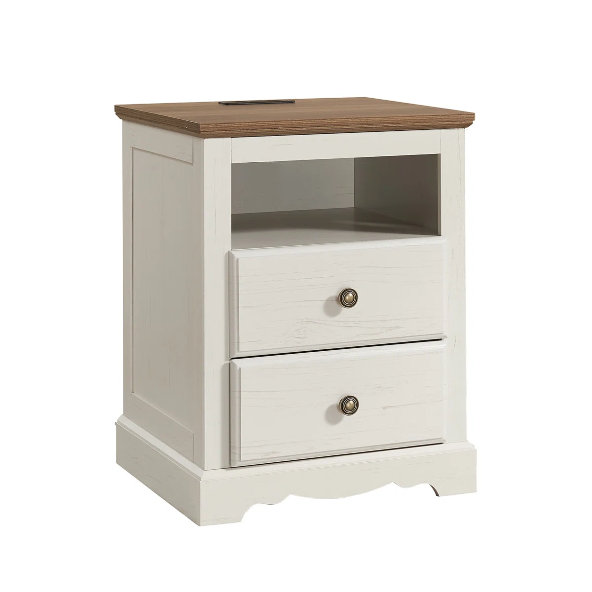 Bring timeless charm and modern convenience to your bedroom with the Ingberg Nightstand with Charging Station, a perfect blend of rustic farmhouse design and everyday functionality. Crafted with beautiful 3D raised drawer fronts and accented by antique bronze handles, this nightstand adds warmth and character to any décor—from vintage country homes to modern rustic interiors.