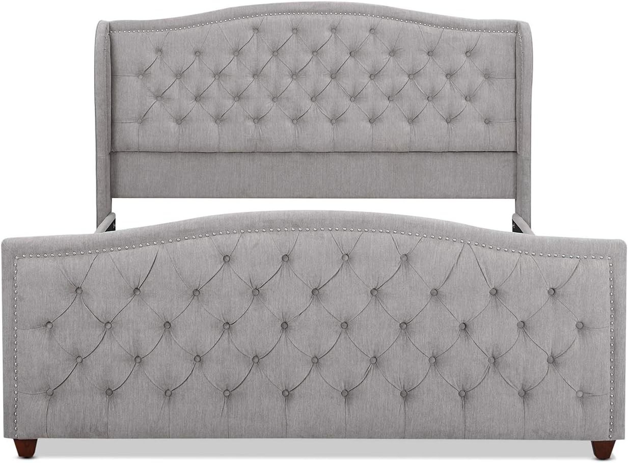 Jennifer Taylor Home Anastasia Upholstered Shelter Headboard Bed Set, King, Silver Grey Polyester