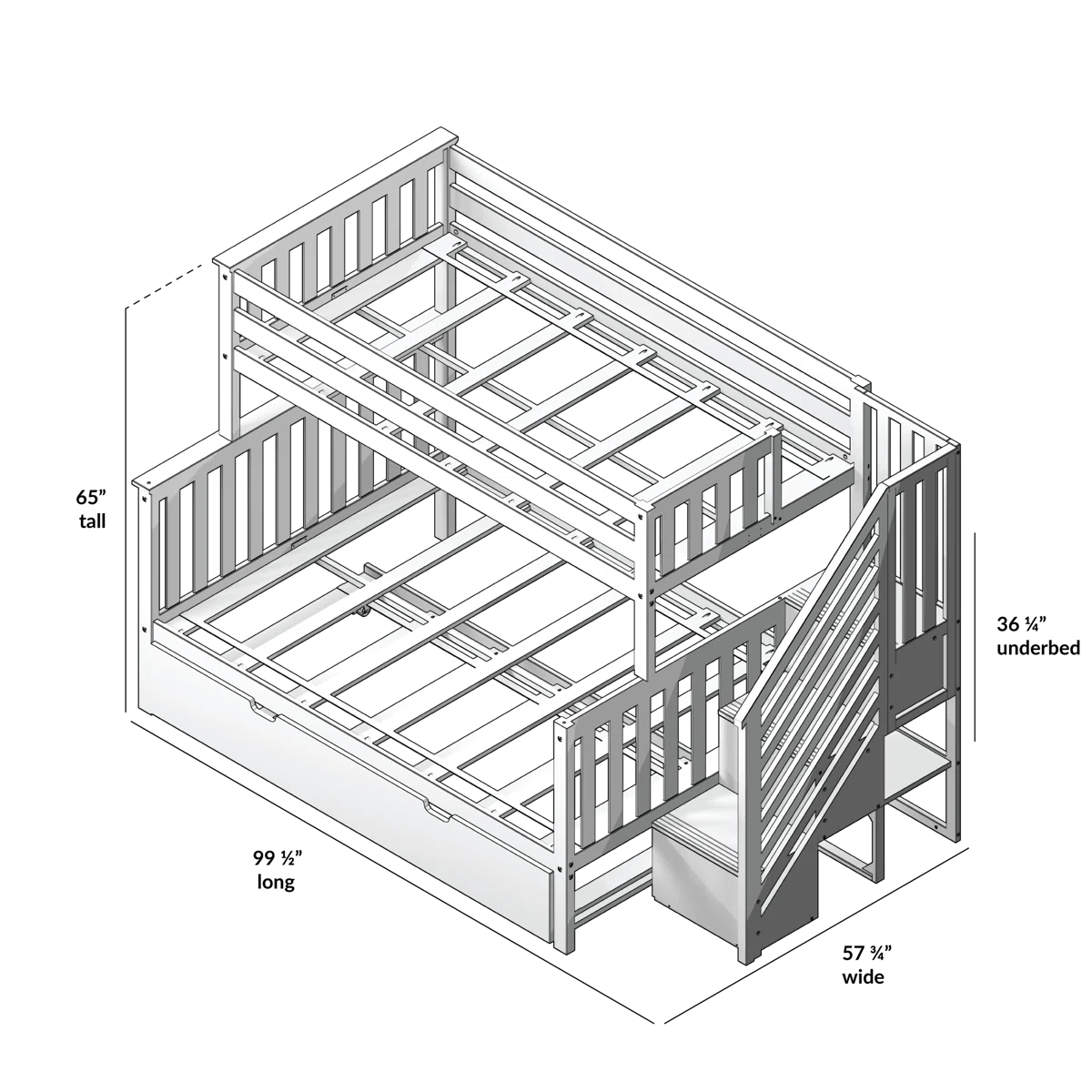 • Twin over full bunk bed with included trundle for extra sleeping space