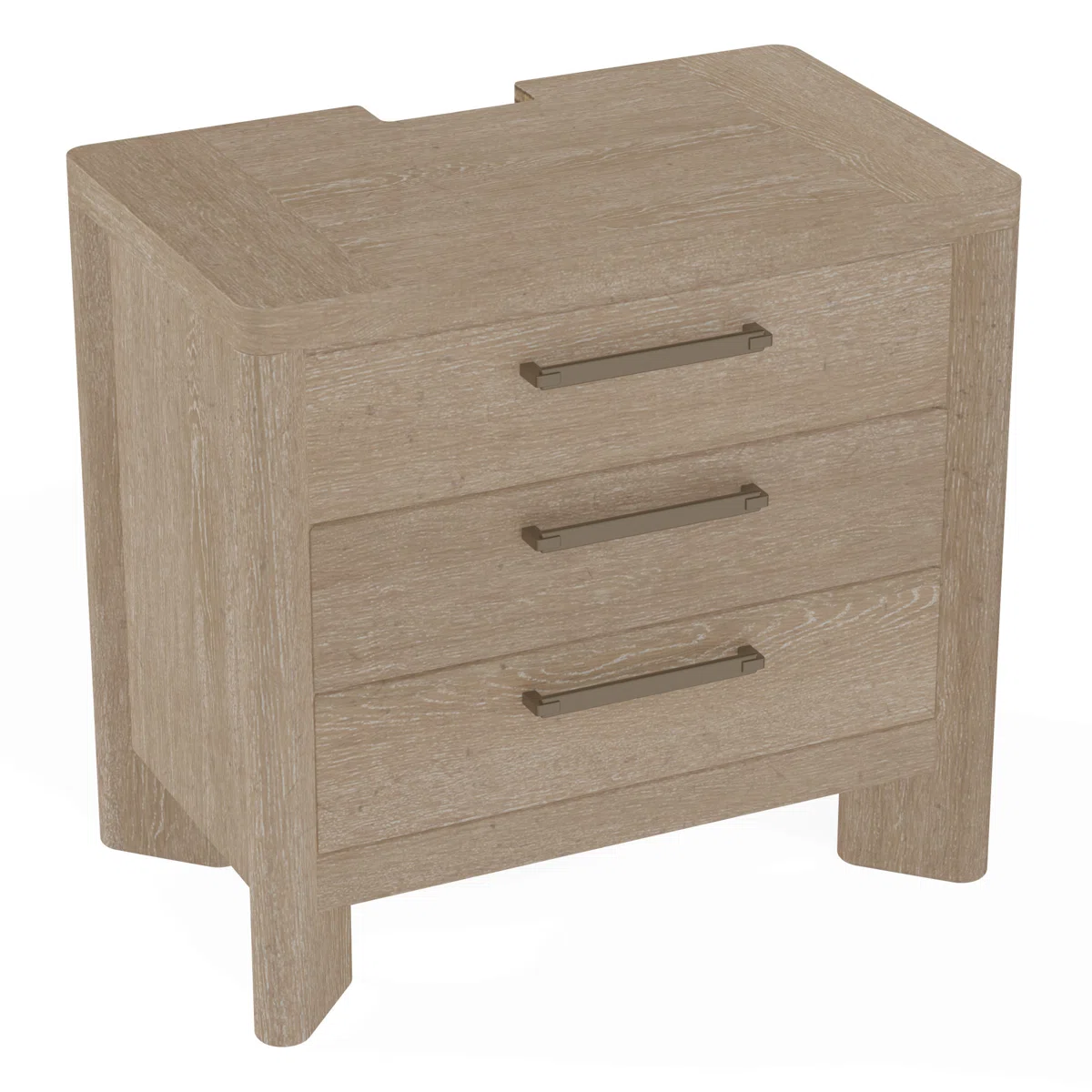 Elevate your bedroom with the Karcen Sand Dune Nightstand, a perfect balance of modern design and everyday functionality. Crafted from solid oak wood in a beautifully weathered sand beige finish, this 3-drawer nightstand adds warmth and sophistication to any space. The low-profile frame and angled legs create a sleek, contemporary silhouette that complements both classic and modern interiors.