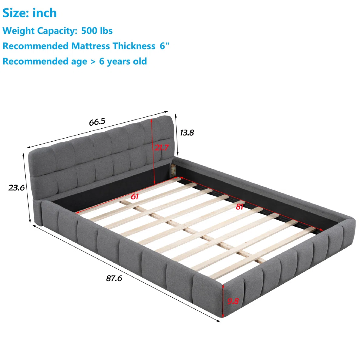 • Weight capacity up to 500 lb, suitable for mattresses up to 6" thick