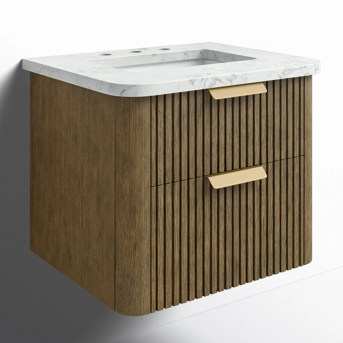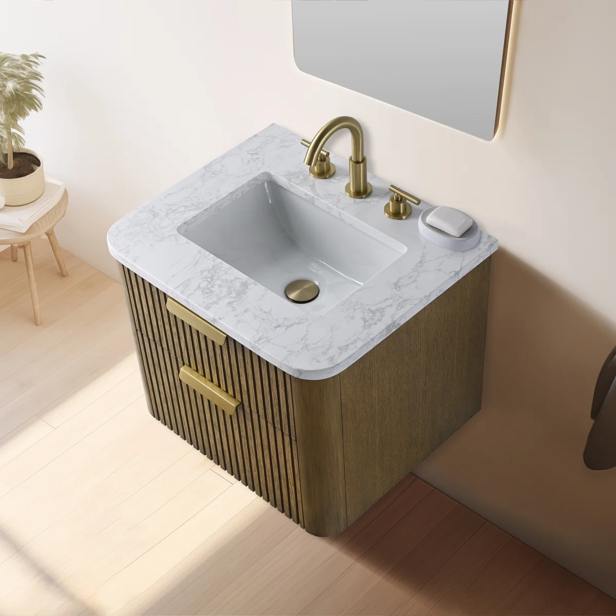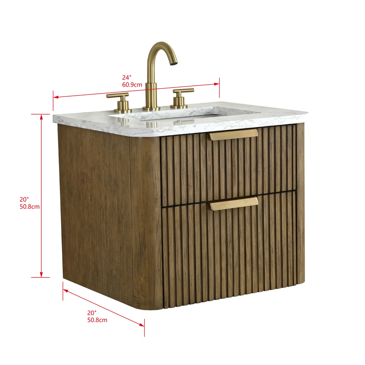 Elevate your bathroom with the Liljan 24" Wall-Mounted Single Bathroom Vanity, designed for modern spaces that demand both style and efficiency. Featuring a floating slatted wood base, this compact vanity creates the illusion of more space while maintaining a sleek, contemporary look.